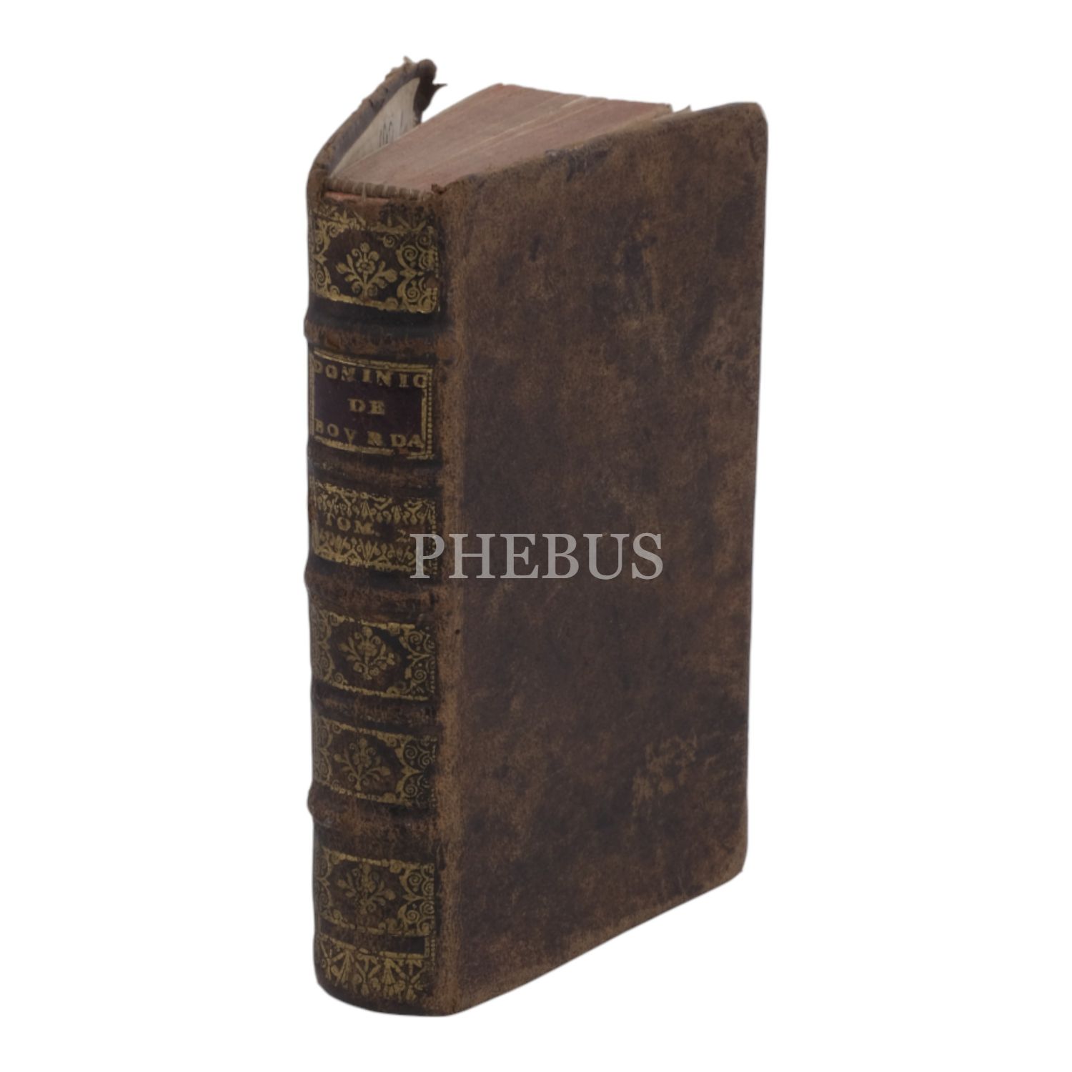 Sırtı panelli, altın yaldız dekor ve başlıklı deri cildinde.