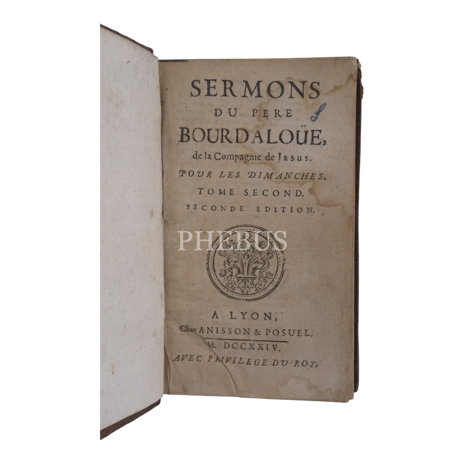 SERMONS DU PERE BOURDALOUE DE LA COMPAGNIE DE JESUS (Tour les Dimanches), 1724, Chez Anisson & Posuel, A Lyon, 389 sayfa, 10x15 cm...