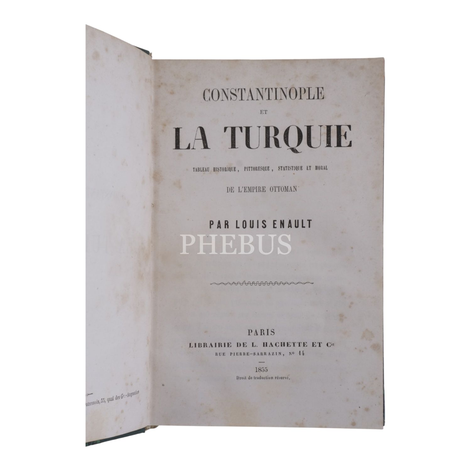 CONSTANTINOPLE ET LA TURQUIE, Louis Enault, 1855, Librairie de L. Hachette et Cie., Paris, 455 sayfa, 12x18 cm...