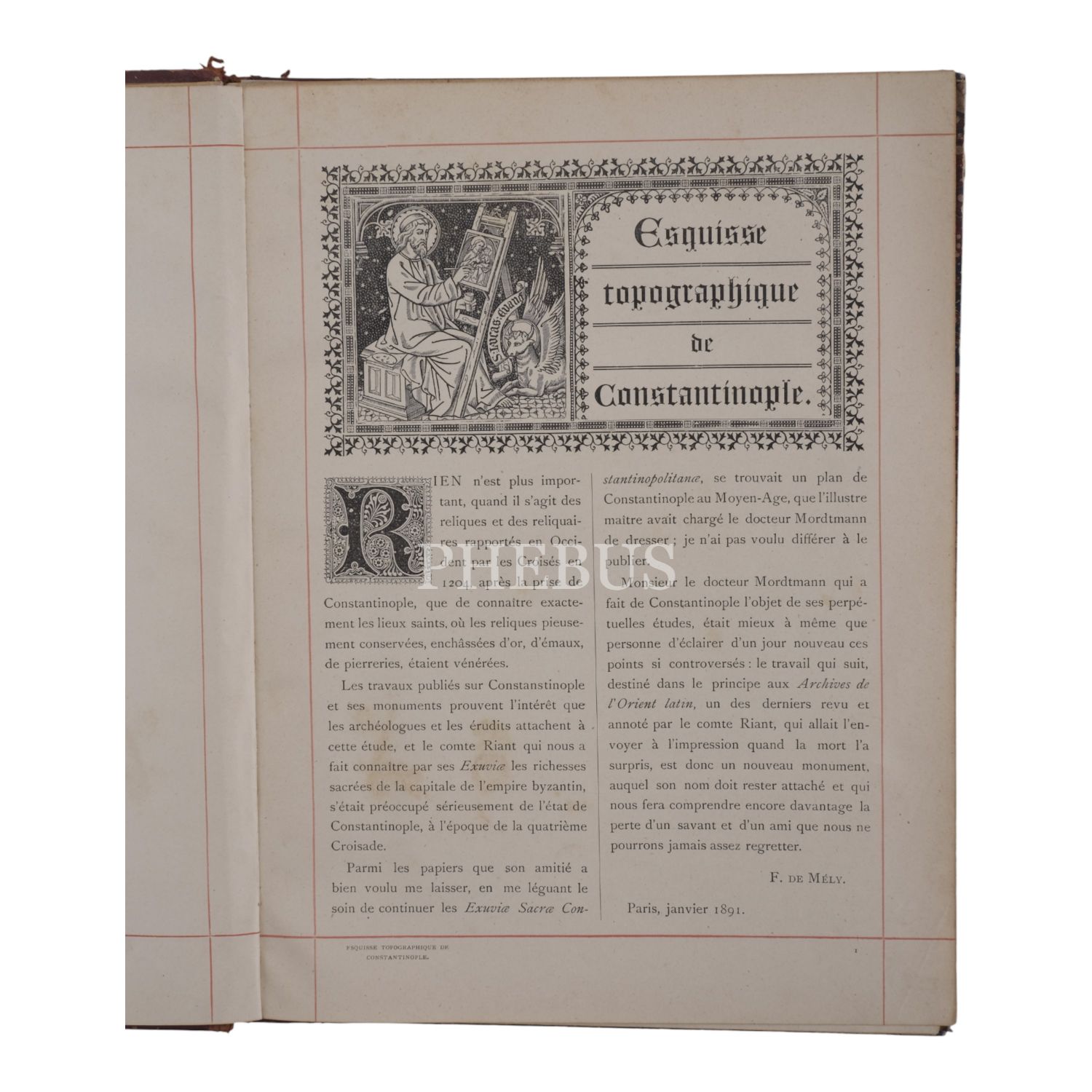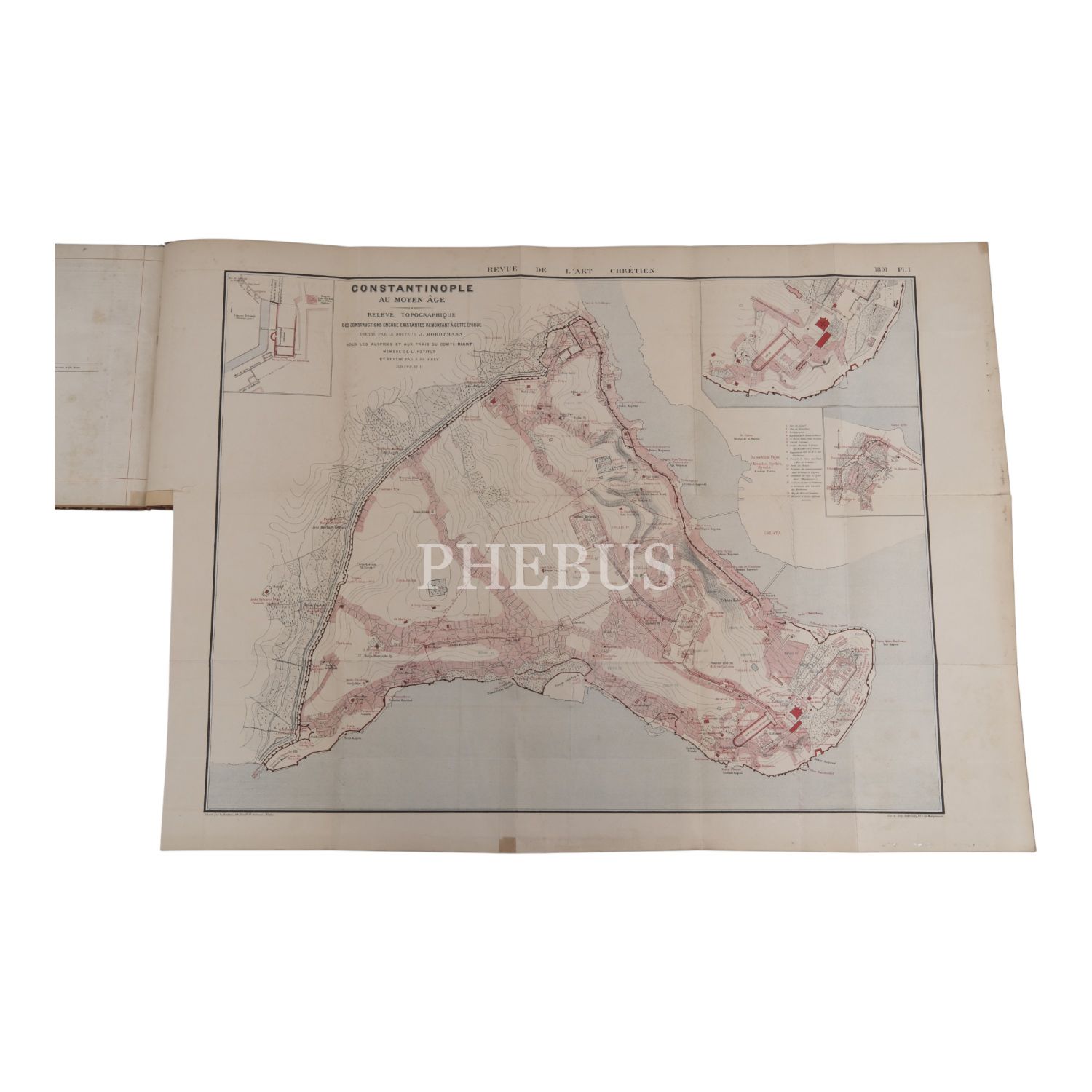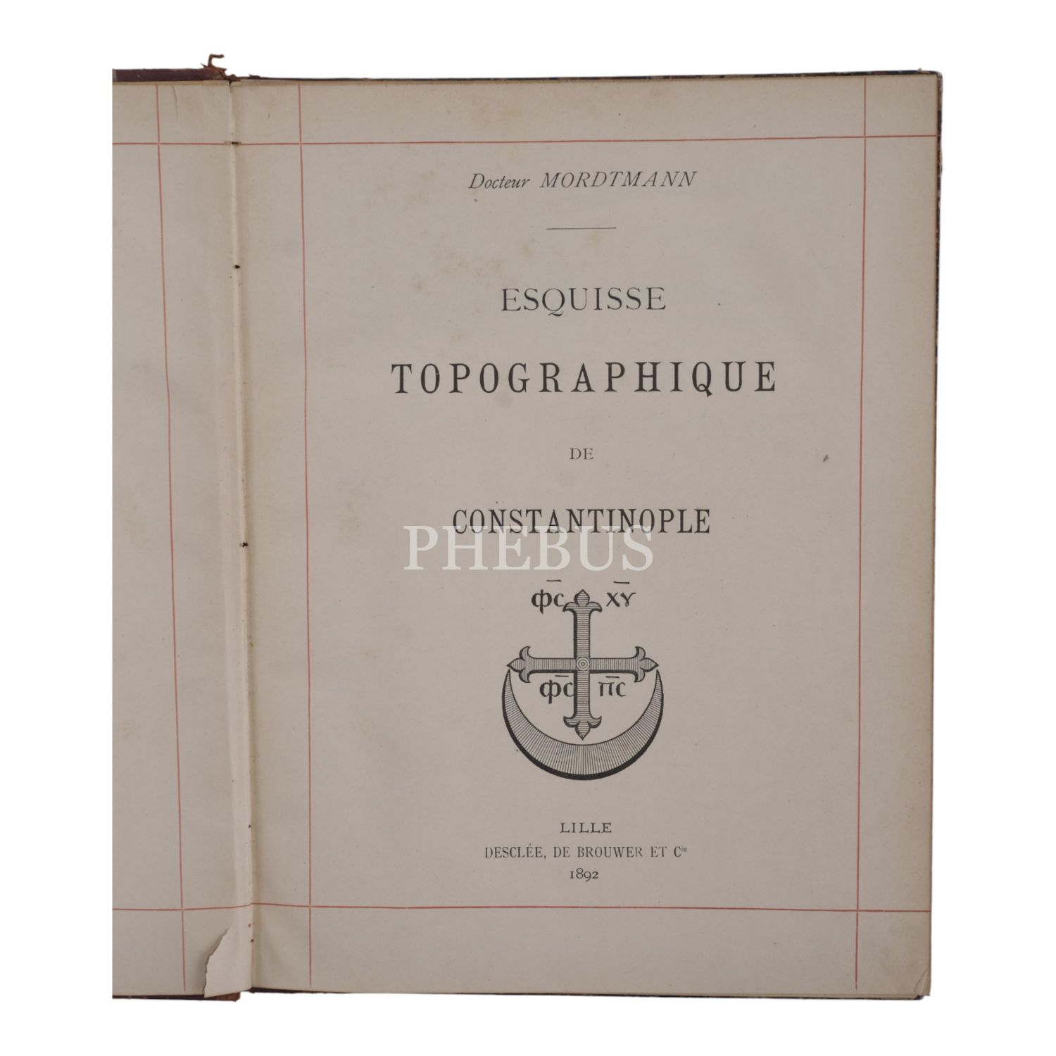 ESQUISSE TOPOGRAPHIQUE DE CONSTANTINOPLE, Docteur Mordtmann, 1892, Desclee de Brouwer et Cie., Lille, 91 sayfa metin + 1 adet dev boy (80x80 cm) katlanır İstanbul planı, 22x29 cm...