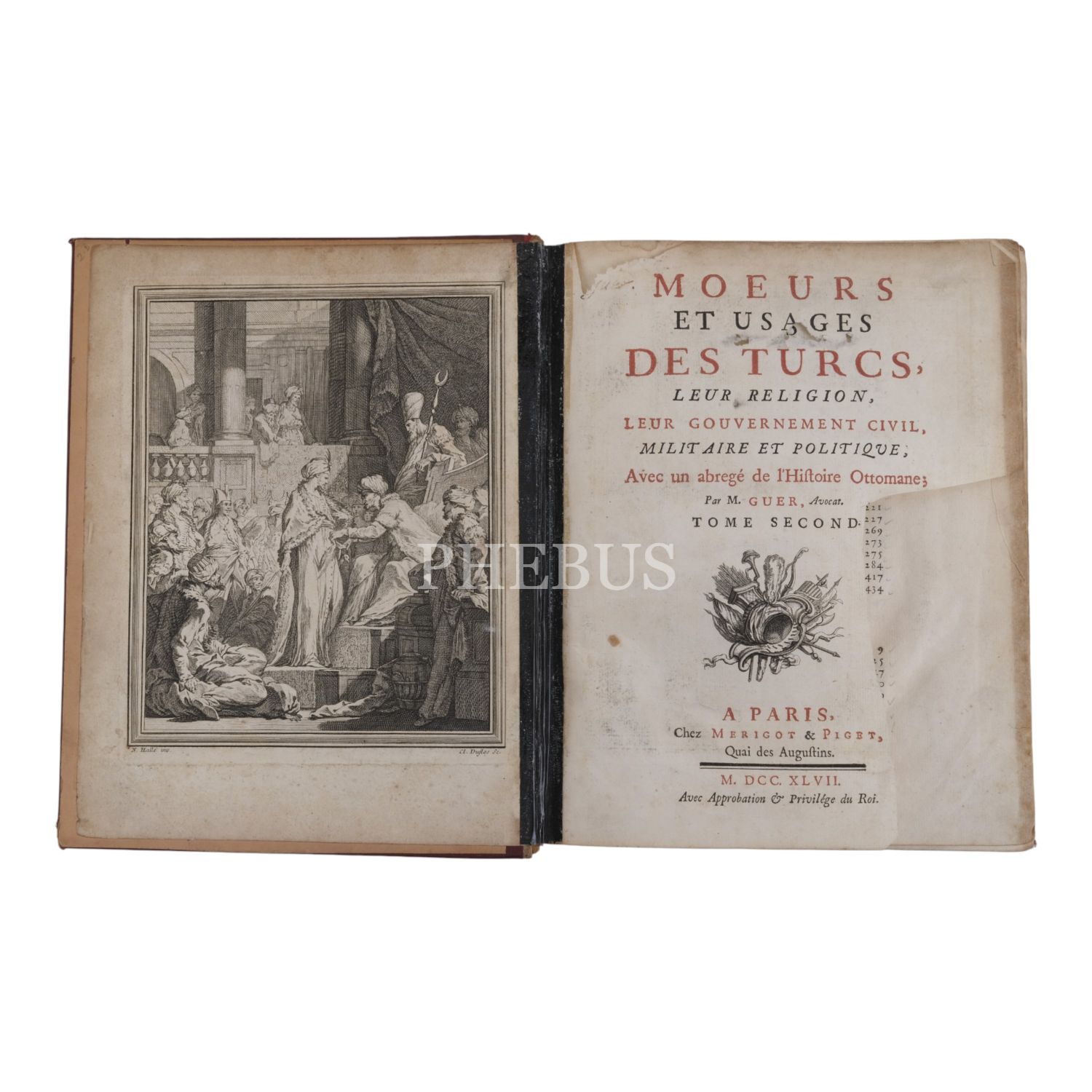 MOEURS ET USAGES DES TURCS, LEUR RELIGION, LEUR GOUVERNEMENT CIVIL, MILITAIRE ET POLITIQUE, AVEC UN ABREGE DE L´HISTOIRE OTTOMANE, M. Guer, Avocat, 1747, Chez Merigot & Piget, Paris, 537 sayfa, 21x26 cm...