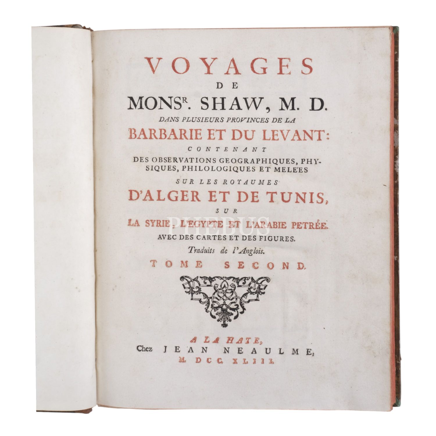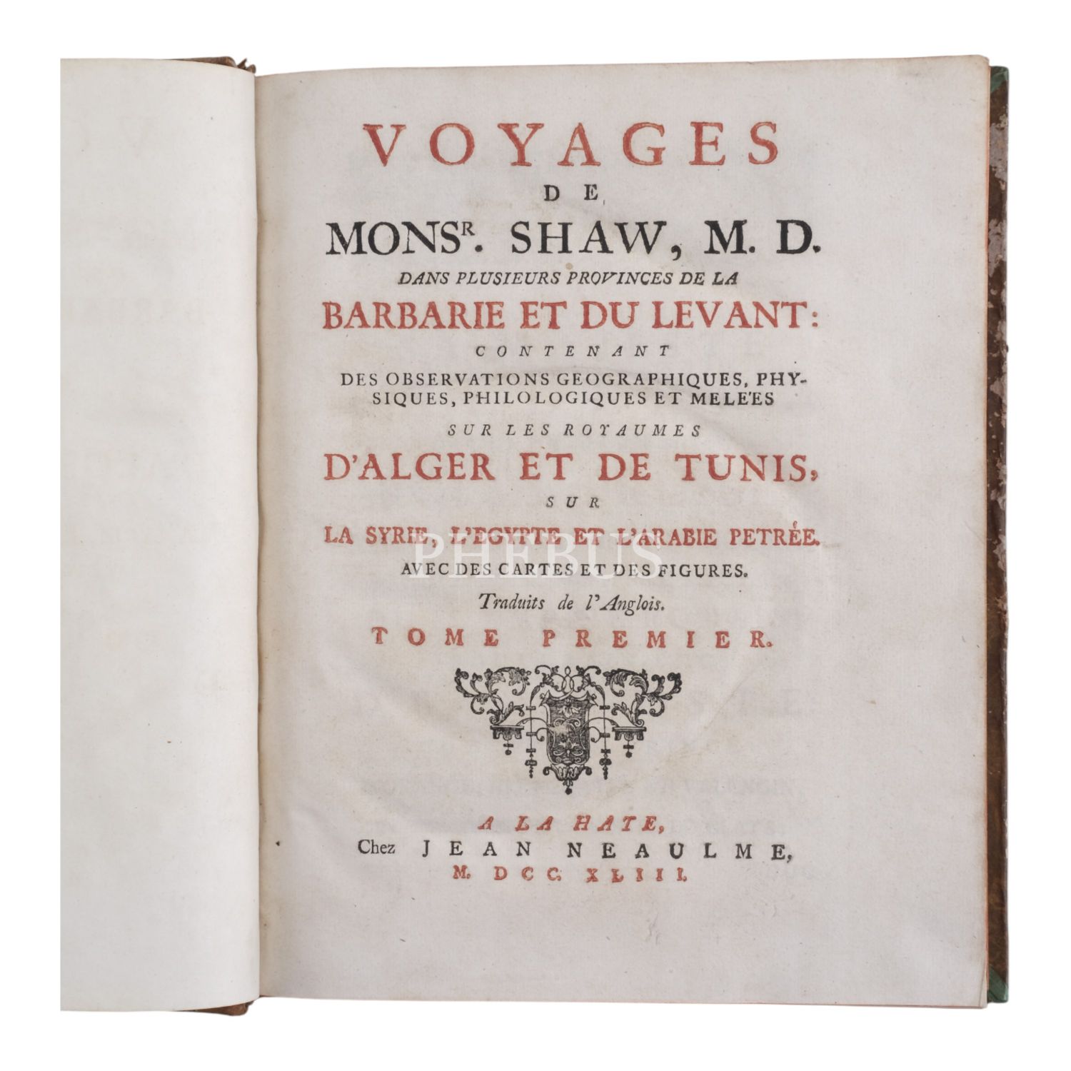 VOYAGES DE M. SHAW, Thomas Shaw, 1843, Jean Neaulme, 414+192+160 sayfa, 22x27 cm...