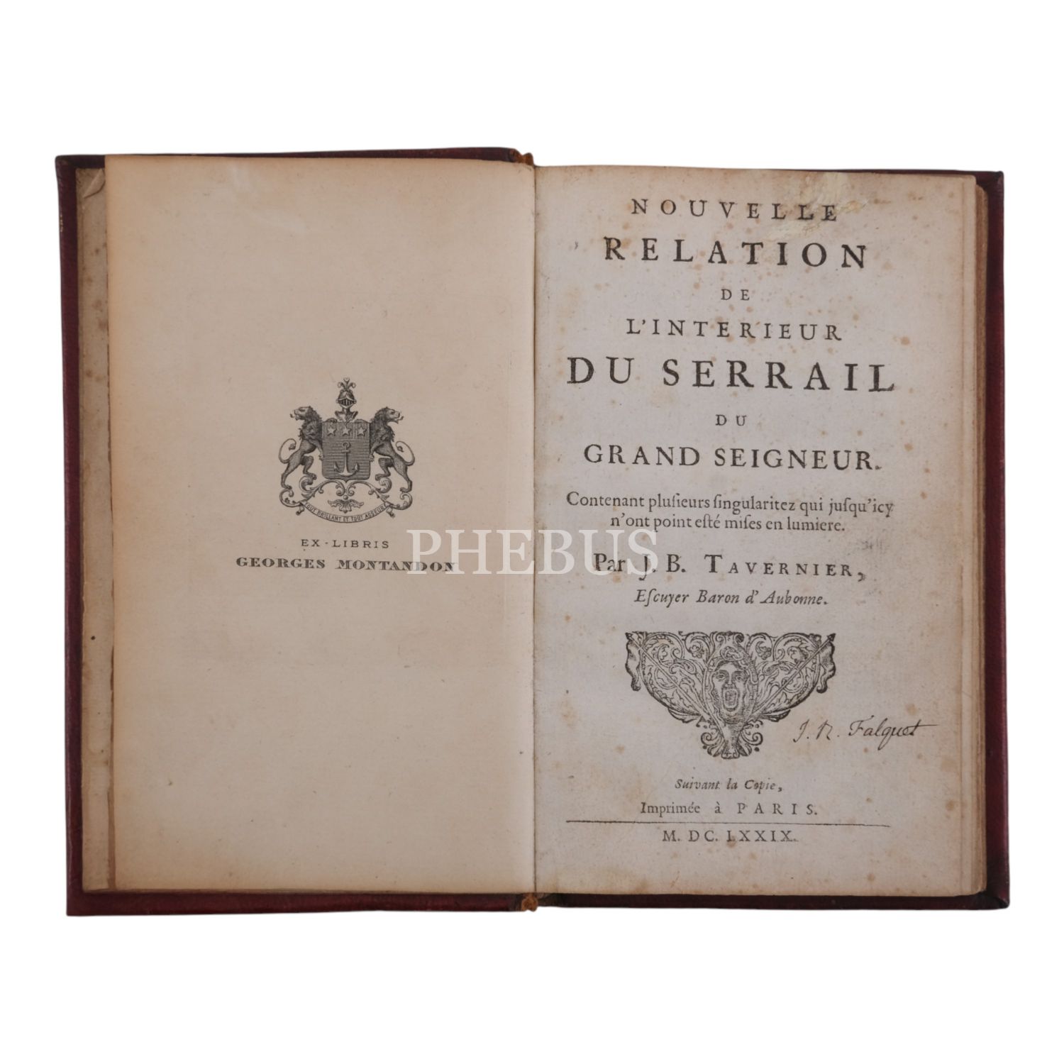 Tam altı kez Doğu yolculuğuna çıkan, iki kez de İstanbul’a gelen Tavernier, Doğu üzerine defalarca tekrar baskısı yapılmış, en güzel seyahatnameleri kaleme almıştır. Müzayedemizde sunduğumuz bu kitap, bu ünlü seyyahın basılan ilk eseri olma özelliğini taşır.