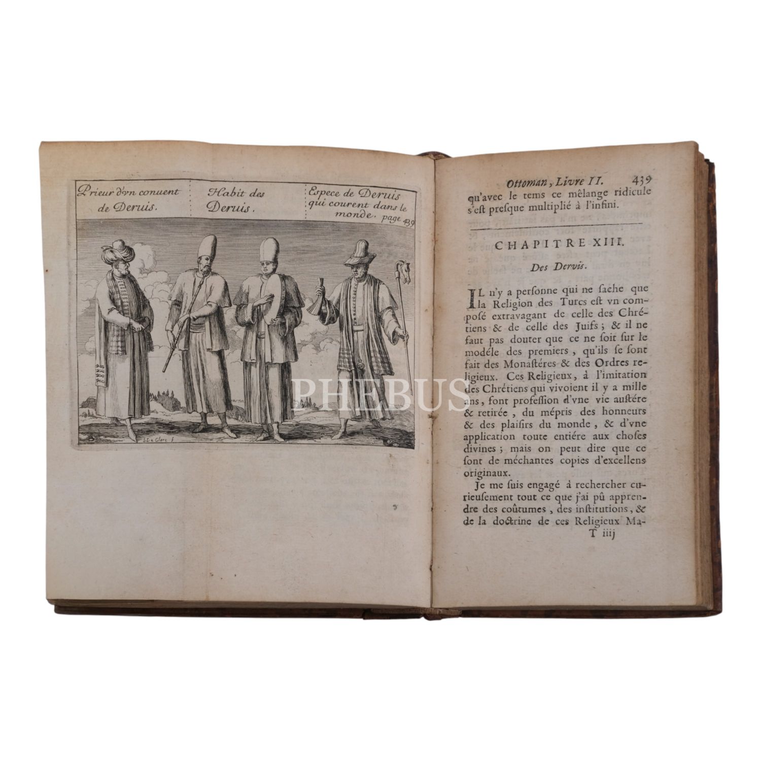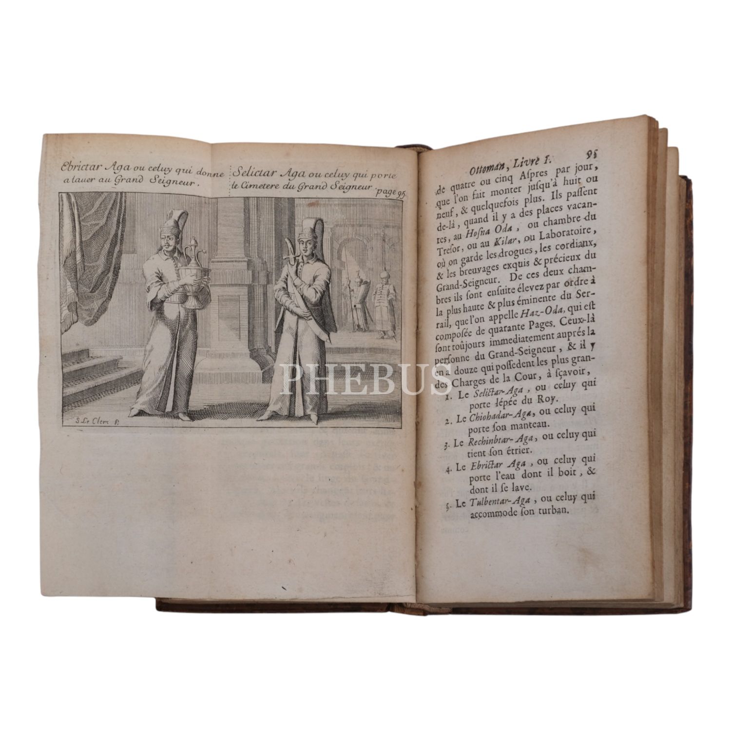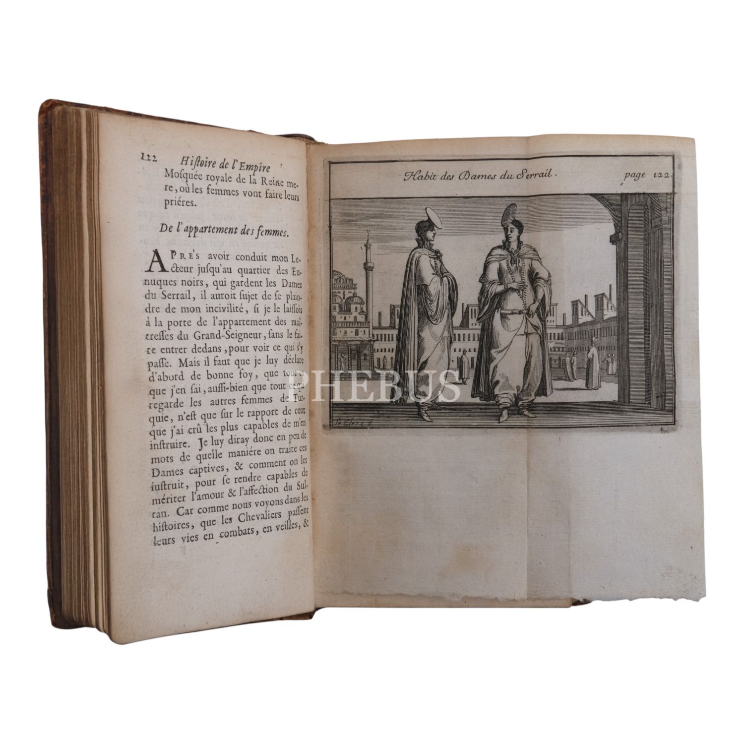 İngiliz diplomat, tarihçi ve Osmanlı İmparatorluğu uzmanı Sir Paul Rycaut (1629-1700) tarafından kaleme alınan ve Osmanlı İmparatorluğu´nun o dönemdeki durumunu tahlil eden eserin Fransızca çevirisi. Alanının en muteber eserlerinden biri olarak halen daha araştırmacıların en çok başvurduğu kaynaklar arasında yer alan kitap; Türklerin politikaları, İslam dininin imparatorluğa etkileri ve Osmanlıların askeri disiplini olmak üzere üç bölümden meydana gelmektedir. Sırtı panelli, altın yaldız dekor ve başlıklı (yer yer silinmiş) deri dönem cildinde. Ön iç kapağında ex libris yer almaktadır.