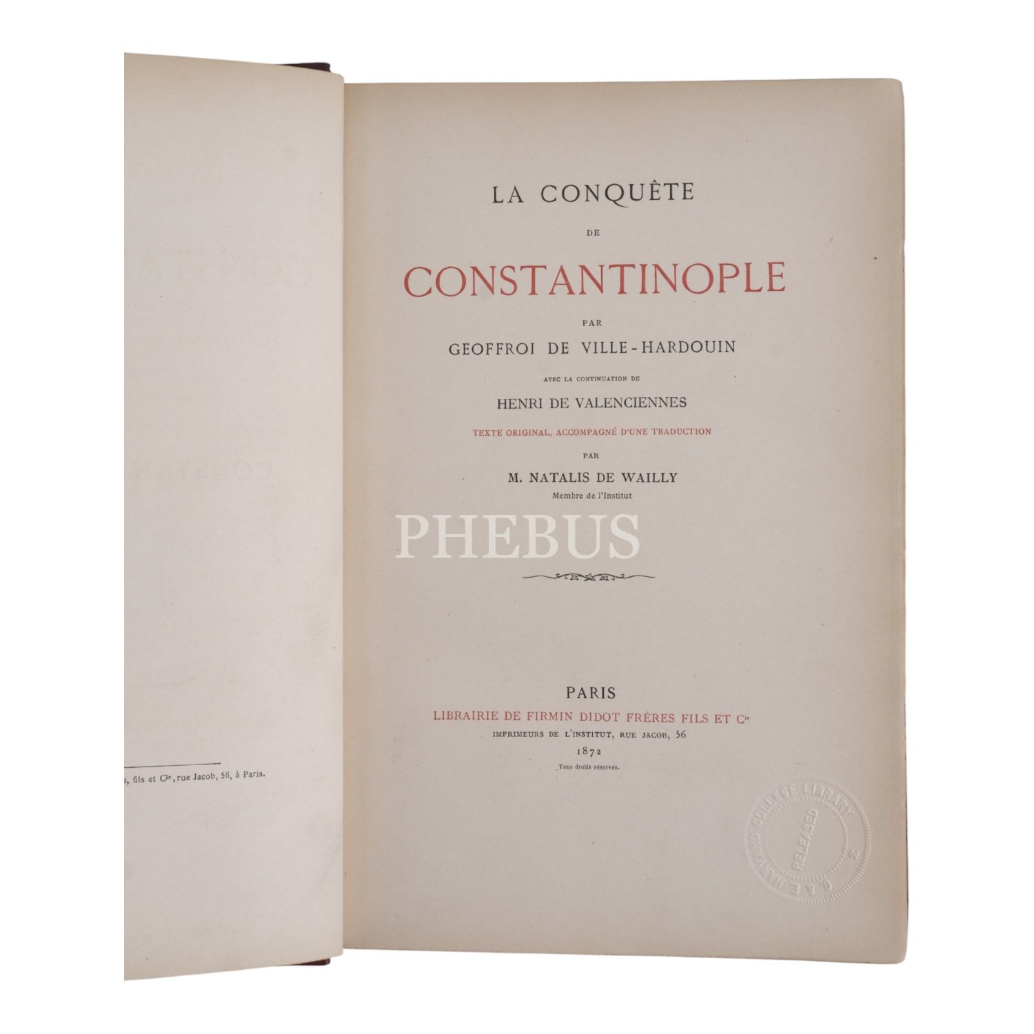LA CONQUETE DE CONSTANTINOPLE, Geoffroi De Ville-Hardouin, 1872, Librairie De Firmin Didot Freres Fils Et Cie. (Paris), 511 sayfa, 19x27 cm...
