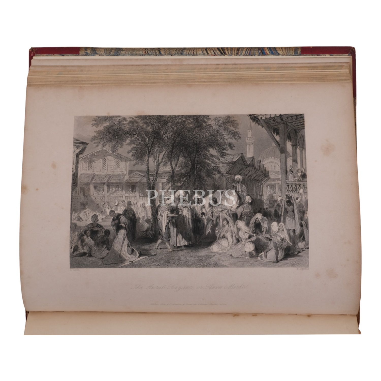 Sultan II. Mahmud döneminde Britanya Büyükelçiliği´nin rahibi olarak 1821-24 ve 1831-32 yılları arasında İstanbul´da yaşayan Robert Walsh´ın (1772-1852), sonraki yıllarda bu şehirden dostlarına yazdığı mektupları derleyerek meydana getirdiği ünlü eseri... Yeniçeri Ocağı´nın kaldırılışı, Yunan İsyanı, büyük İstanbul Yangını gibi çalkantılı olayların yaşandığı II. Mahmud döneminde İstanbul´da yaşayan ve tüm bu olaylara tanık olan Walsh´ın birinci elden gözlemlerini aktardığı esere, Thomas Allom´un büyüleyici gravürleri (96 adet, eksiksiz) eşlik ediyor... Sırtları panelli, altın yaldız dekor ve başlıklı; ön kapakları altın yaldız başlıklı, iç ve dış kapakları ve sayfa kenarları ebru desenli ciltlerinde.