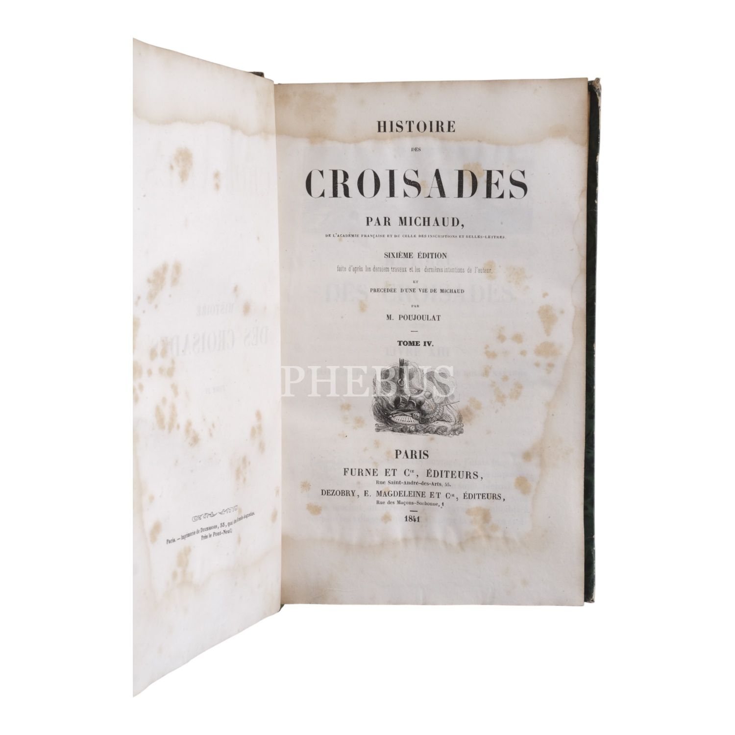 HISTOIRE DES CROISADES (6 cilt takım), J. F. Michaud - M. Poujoulat, 1841, Furne et Cie., Editeurs, Paris, 477+517+470+430+507+438 sayfa, 14x22 cm...