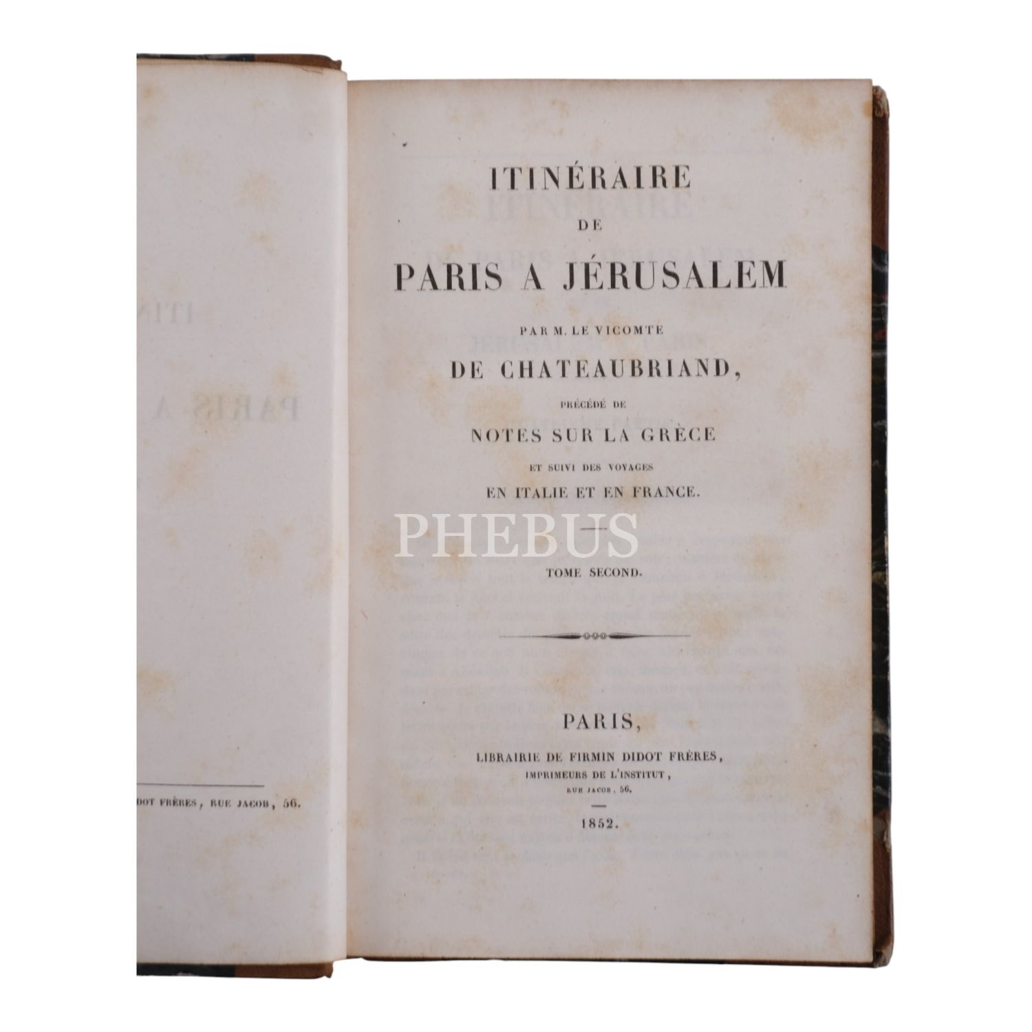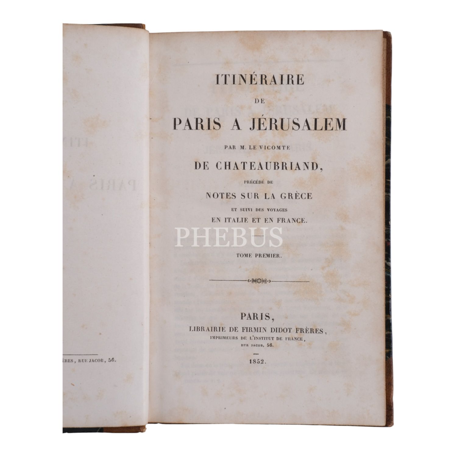 ITINERAIRE DE PARIS A JERUSALEM (2 cilt takım), François-Rene de Chateaubriand, 1852, Librairie de Firmin Didot Freres, Paris, 376+419 sayfa, 12x18 cm...