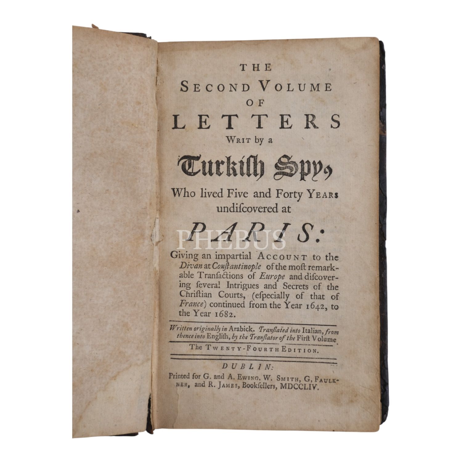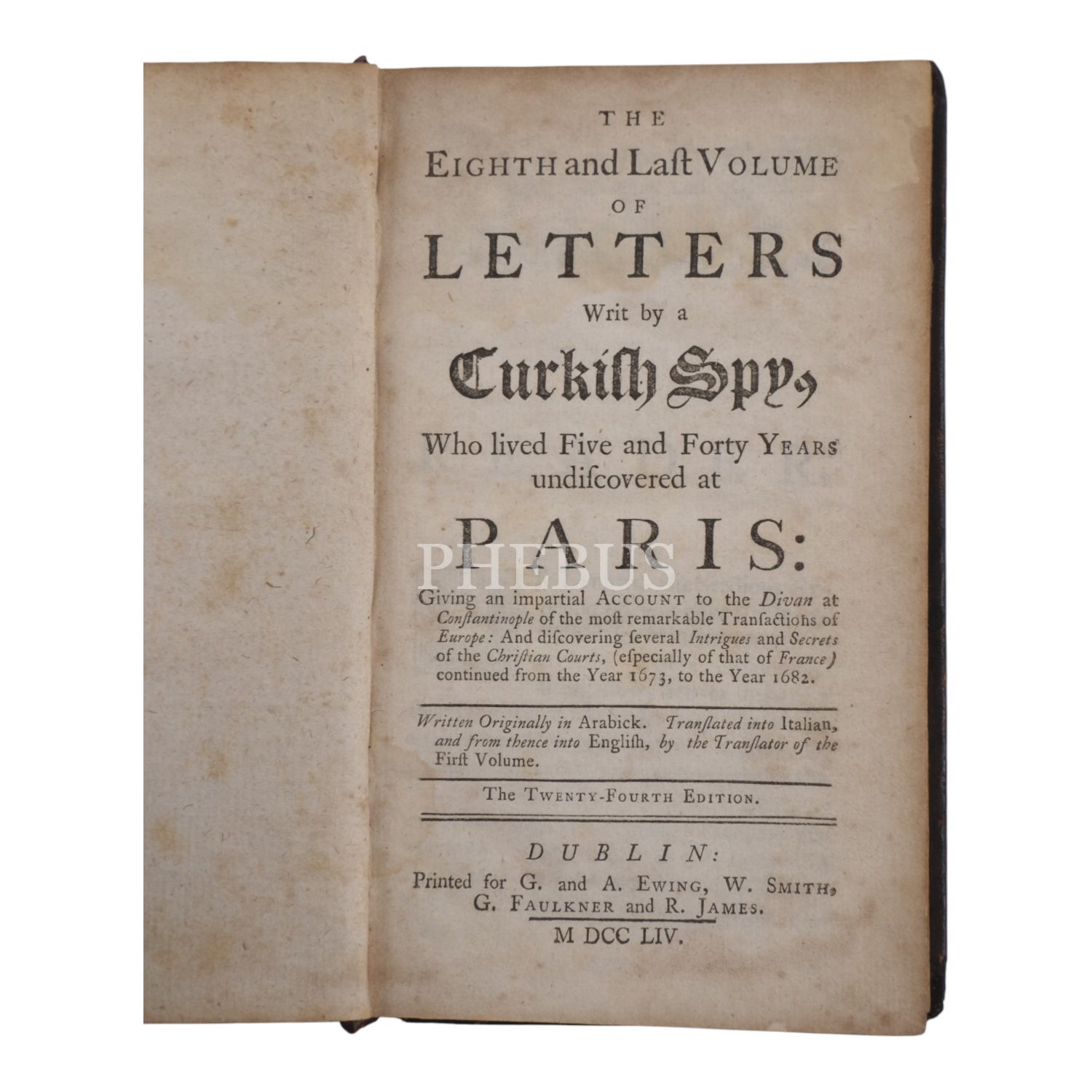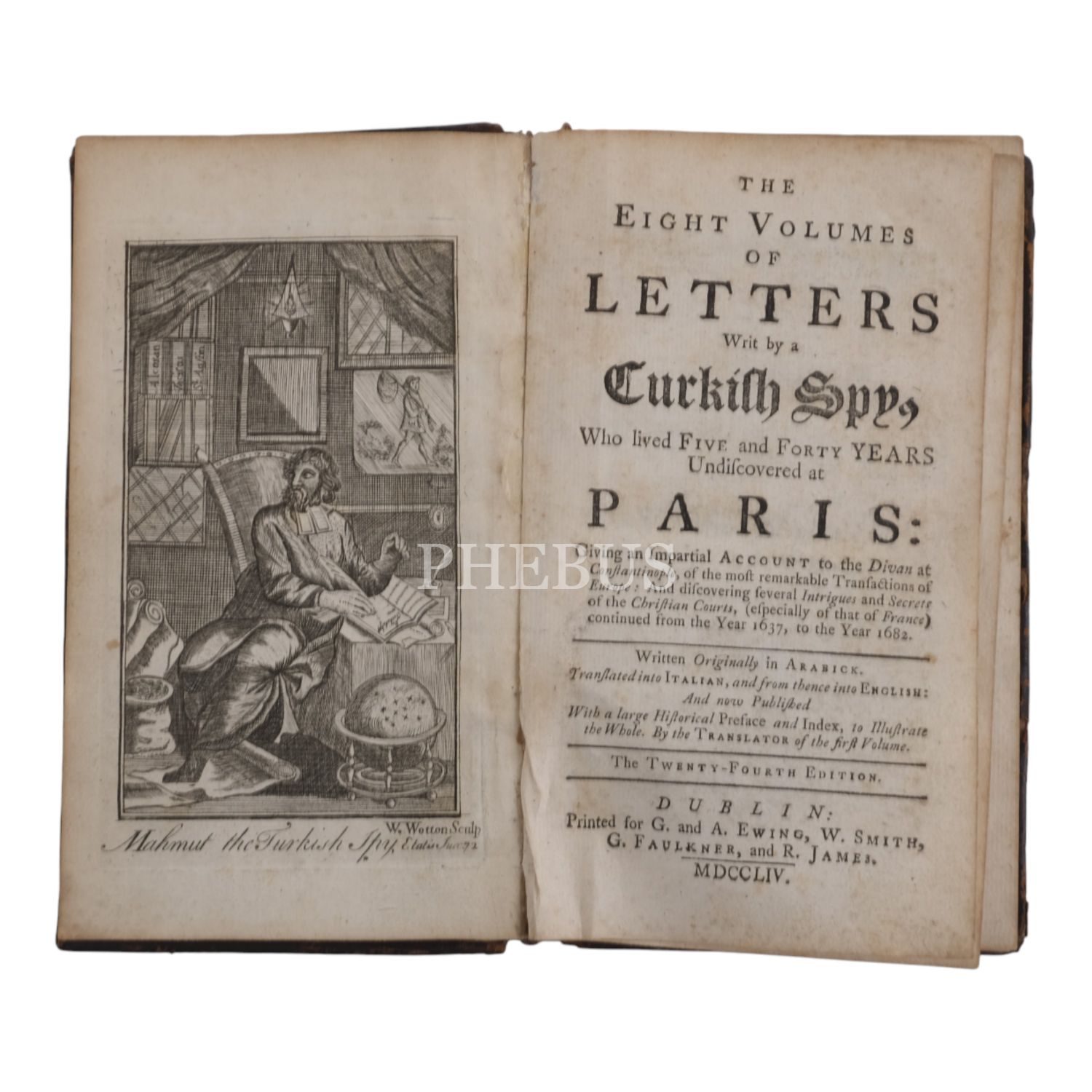 "MAHMUT" THE TURKISH SPY - LETTERS WRIT BY TURKISH SPY (8 cilt takım), 1754, G. and A. Ewing, W. Smith, G. Faulkner, and R. James, Dublin, 312+240+232+243+276+238+232+238 sayfa, 11x17 cm...