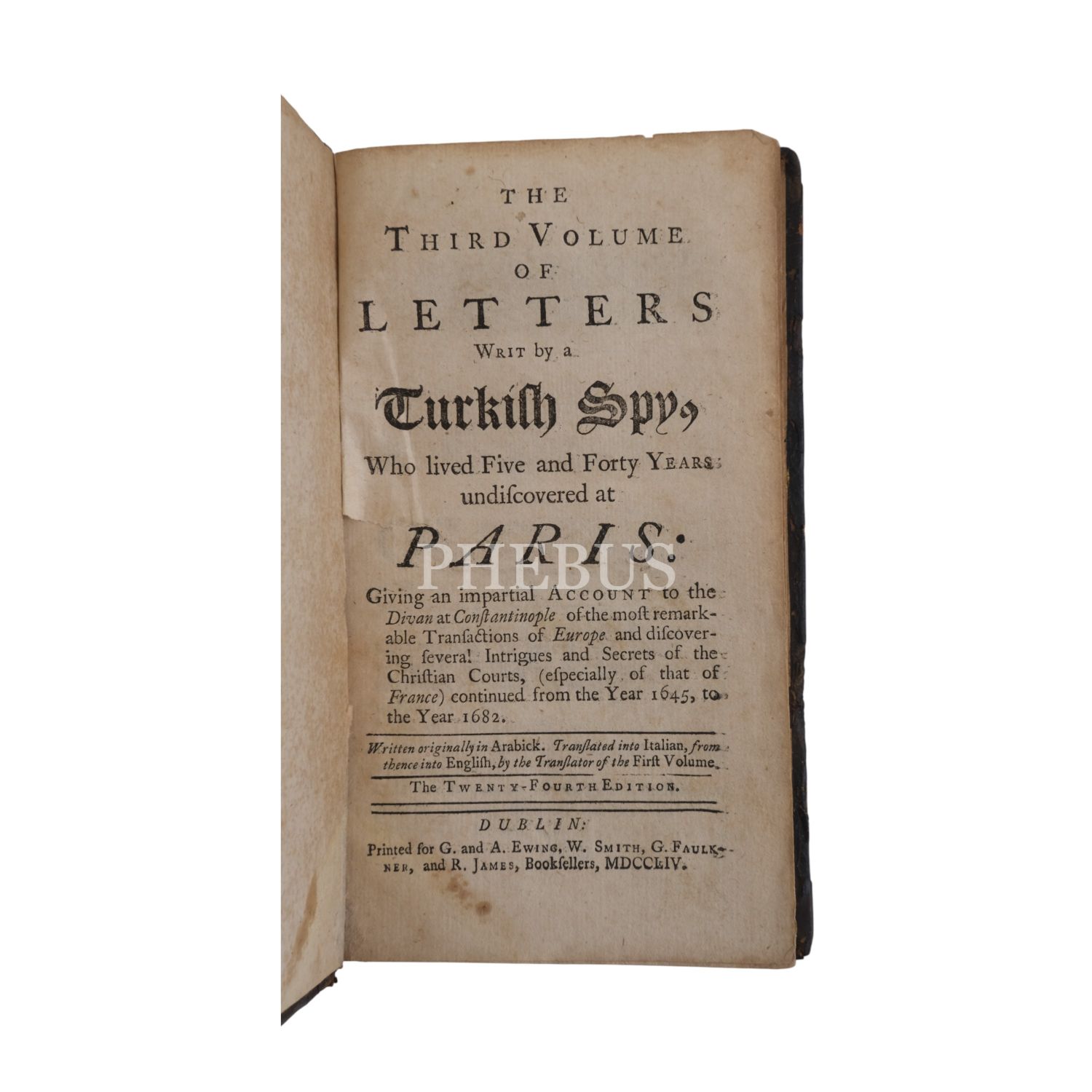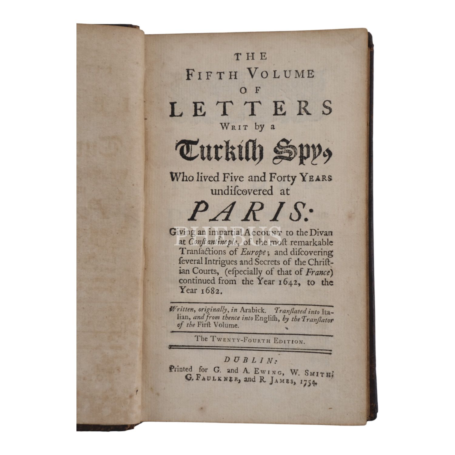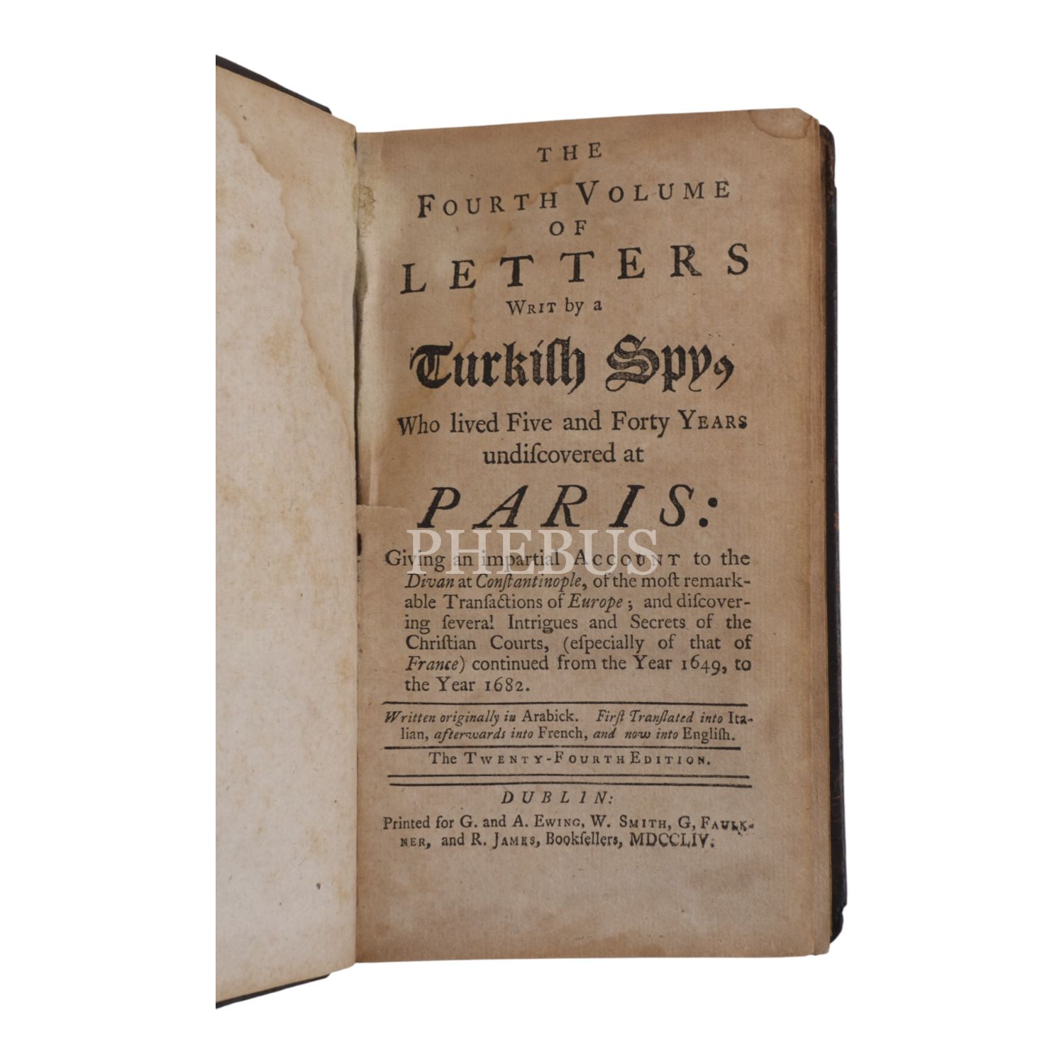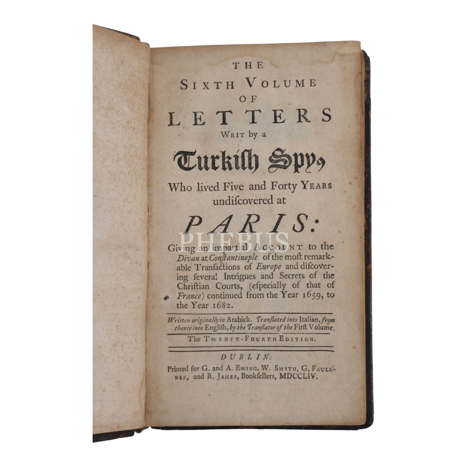 "MAHMUT" THE TURKISH SPY - LETTERS WRIT BY TURKISH SPY (8 cilt takım), 1754, G. and A. Ewing, W. Smith, G. Faulkner, and R. James, Dublin, 312+240+232+243+276+238+232+238 sayfa, 11x17 cm...