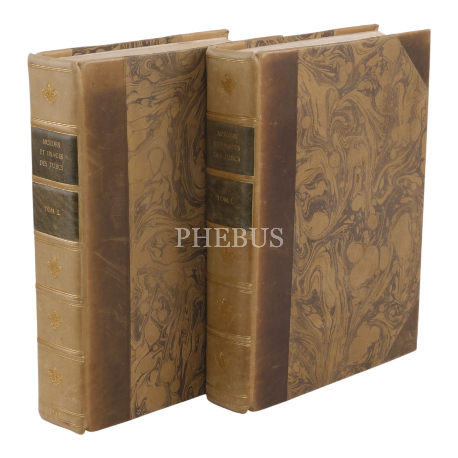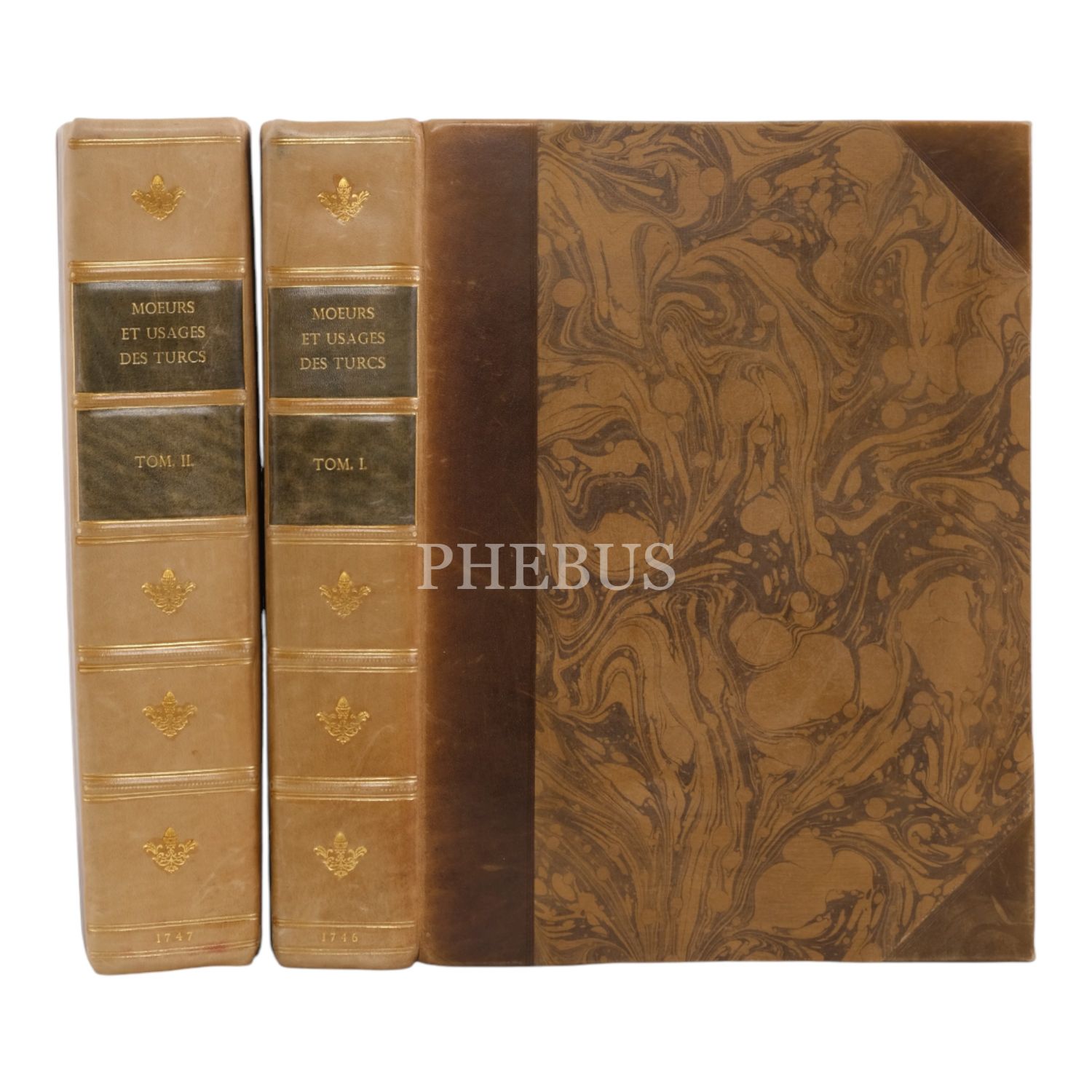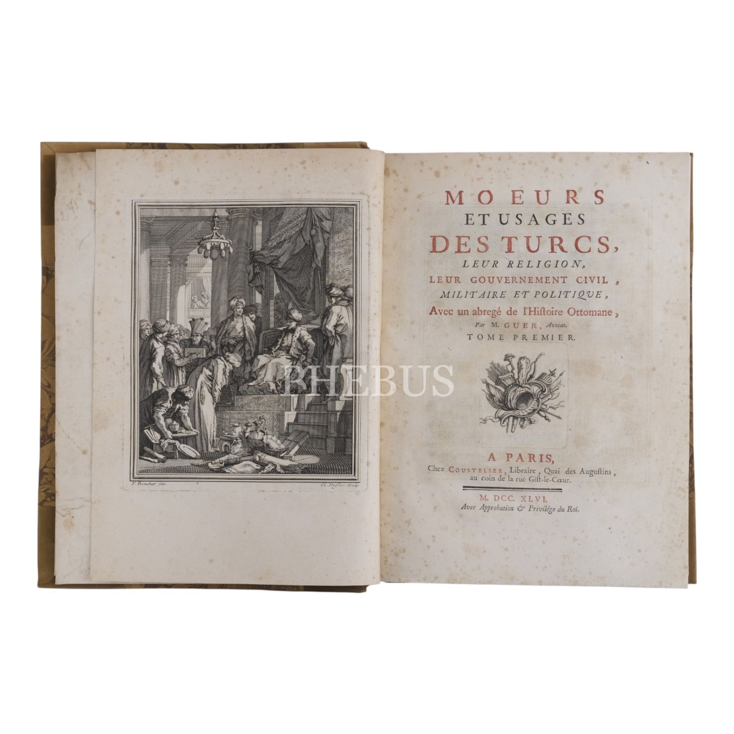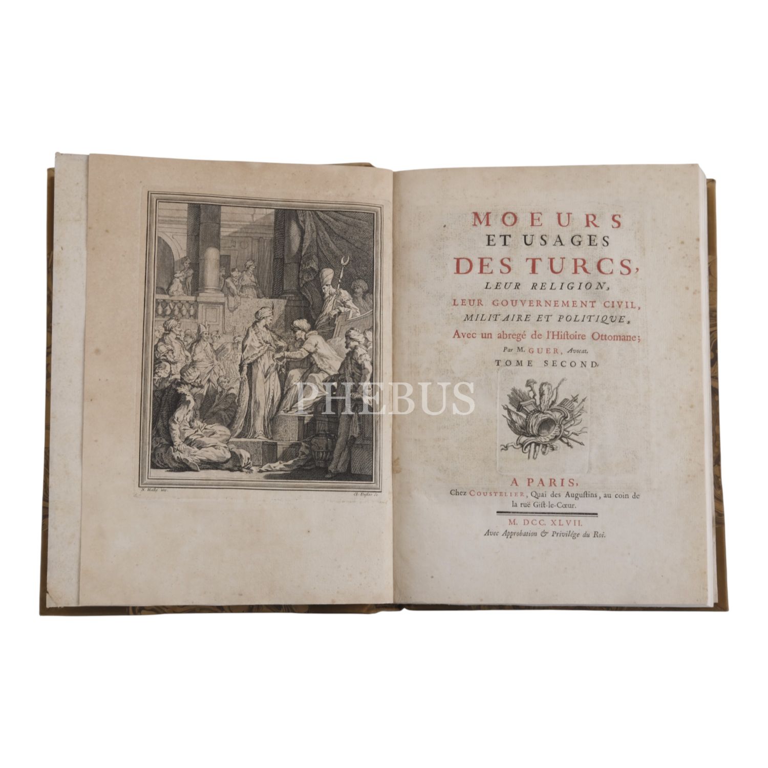 MOEURS ET USAGES DES TURCS, LEUR RELIGION, LEUR GOUVERNEMENT CIVIL, MILITAIRE ET POLITIQUE, AVEC UN ABREGE DE L´HISTOIRE OTTOMANE (2 cilt takım), M. Guer, Avocat, 1746, Chez Coustelier, Libraire, A Paris, 452+537 sayfa, 23x31 cm...