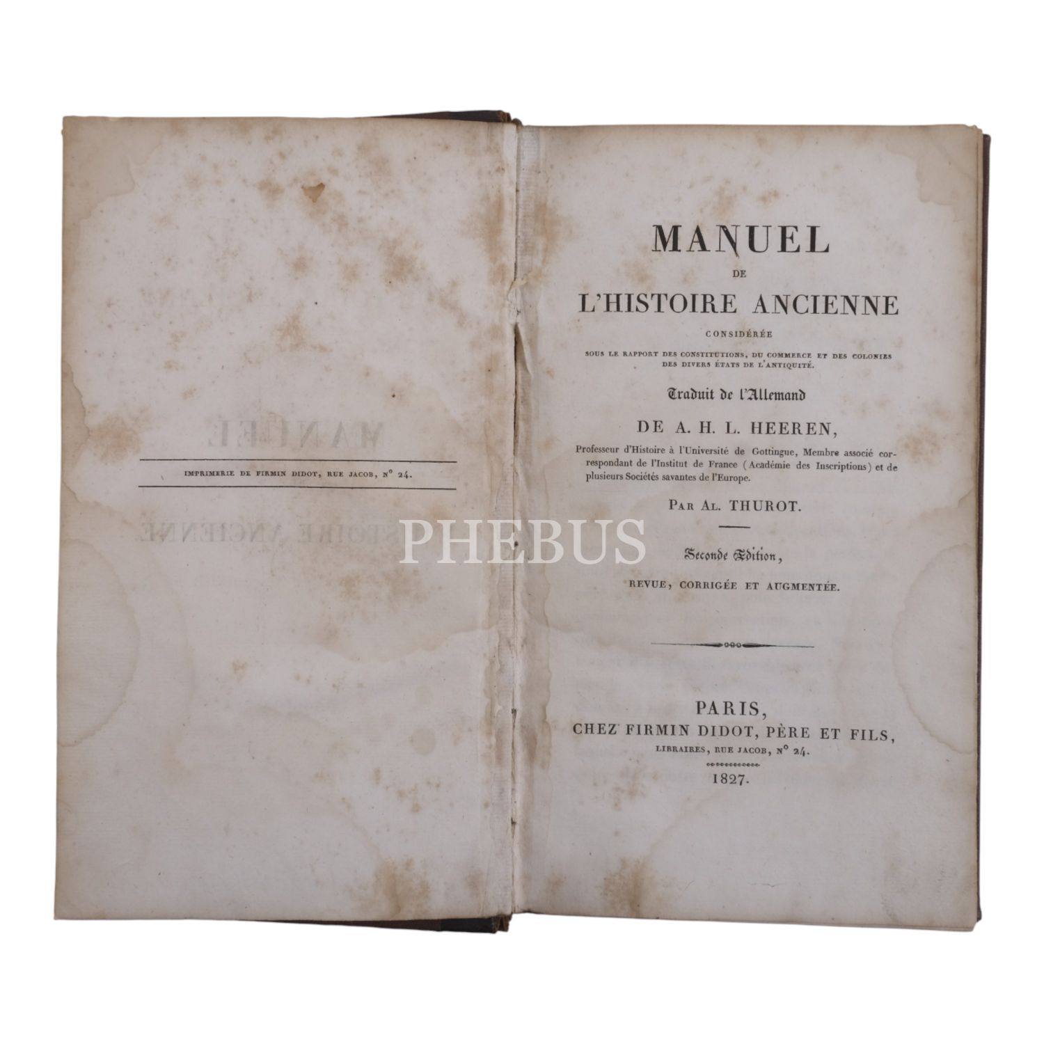 MANUEL DE L´HISTOIRE ANCIENNE, A. H. L. Heeren - Al. Thurot, 1827, Chez Firmin Didot, Pere et Fils, Paris, 525 sayfa, 13x22 cm...