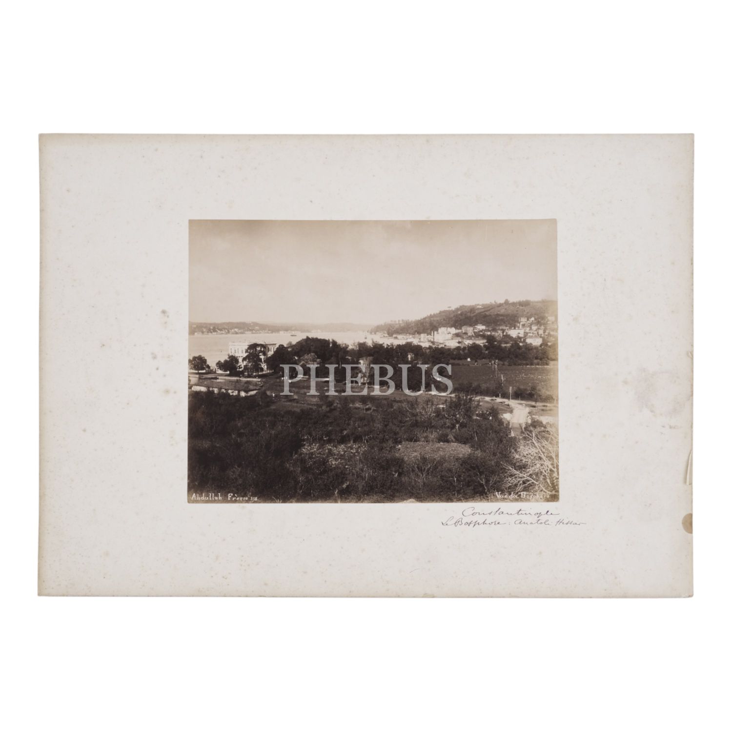 Abdullah Freres (Biraderler)´in objektifinden, Küçüksu sırtlarından alınmış Küçüksu Kasrı ve Anadolu Hisarı (Boğaziçi) manzarası, albümin baskı, kartona yapışıktır, fotoğraf 26x20 cm, karton 45x33 cm...