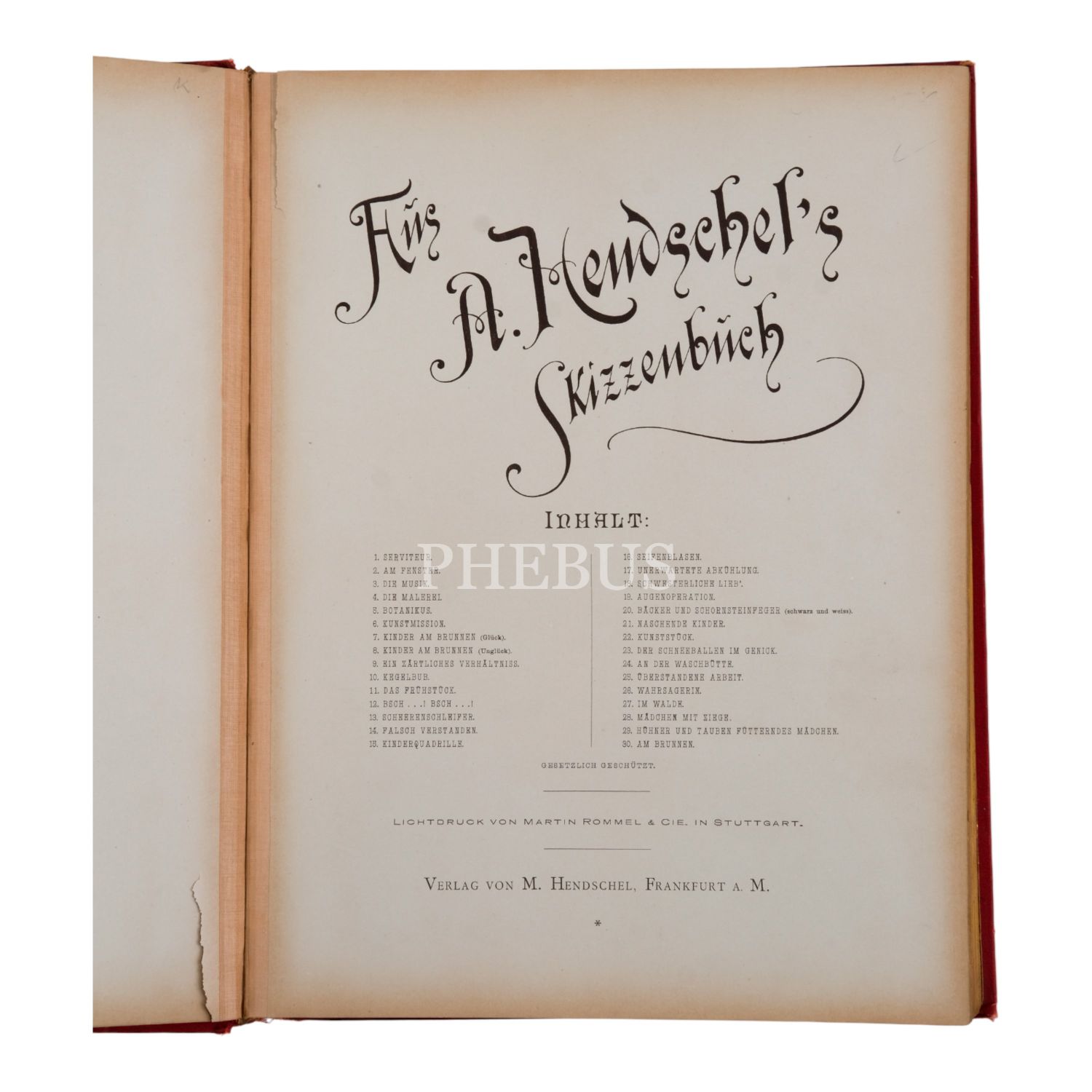 AUS A. HENDSCHEL´S SKIZZENBUCH, Hendschel, Verlag von M. Hendschel (Frankfurt), 30 sayfa, 25x33 cm...