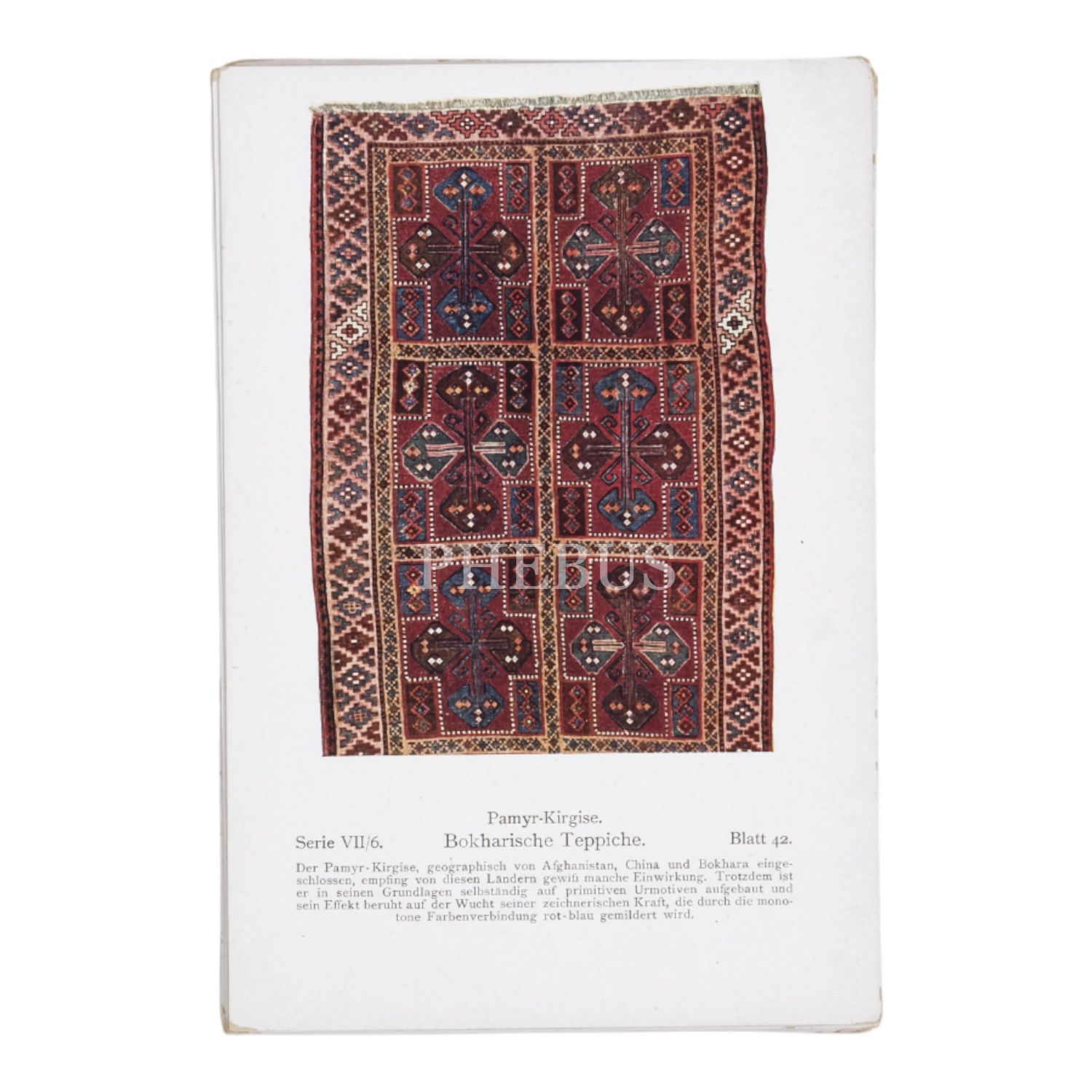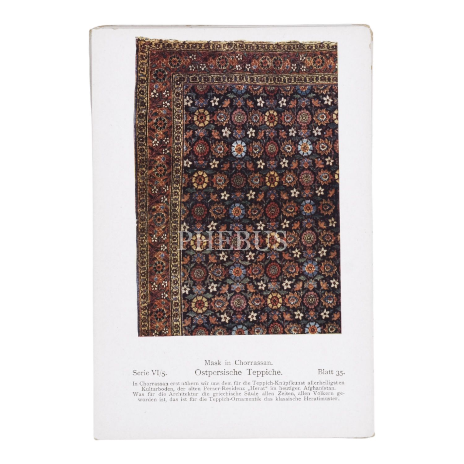 Türk, İran, Kürt, Türkmen ve Çin halılarından örnekler ve kısa Almanca açıklamaların yer aldığı 60 adet kart, 12x18 cm...