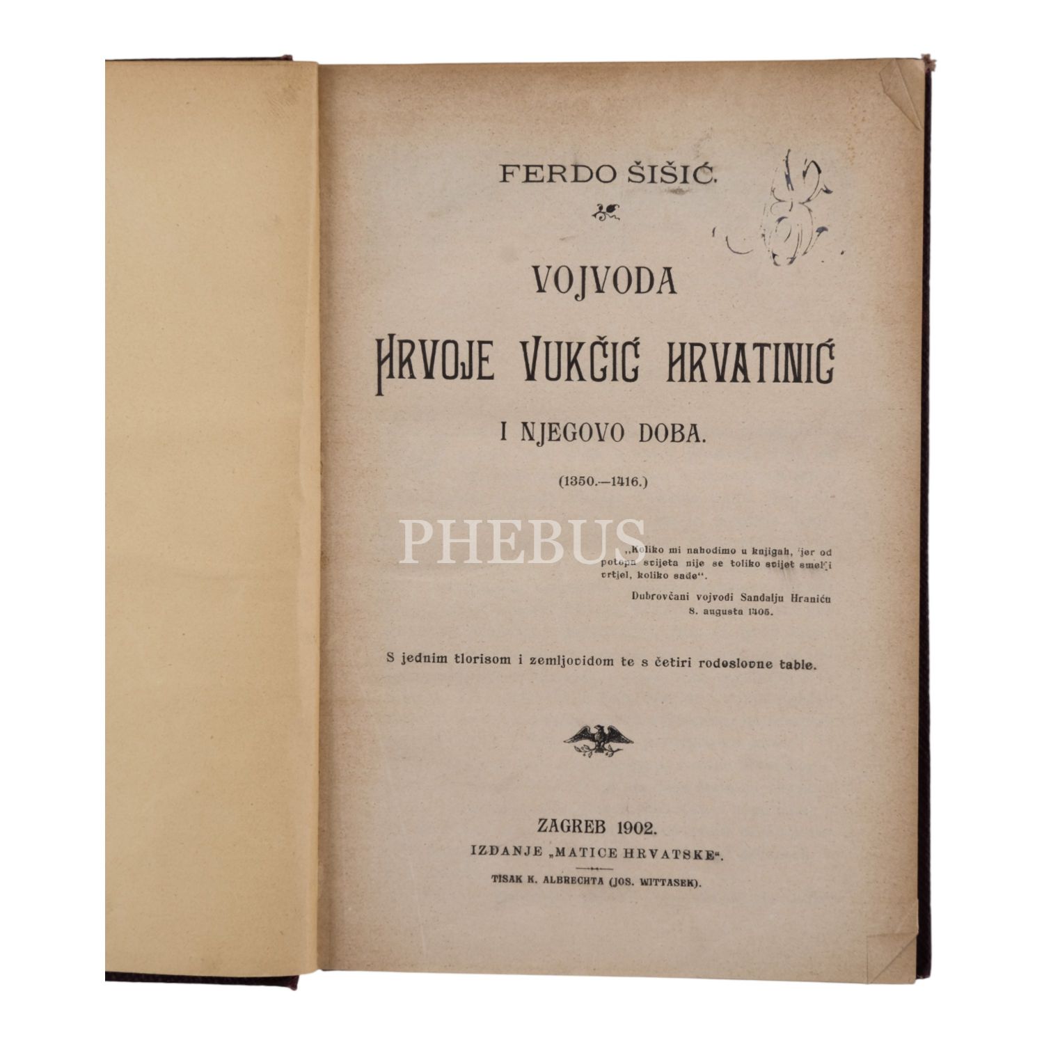 VOJVODA HRVOJE VUKCIC HRVATINIC I NJEGOVO DOBA, Ferdo Sisic, 1902, İzdanje Matice Hrvatske (Zagreb), 288 sayfa, 15x22 cm...