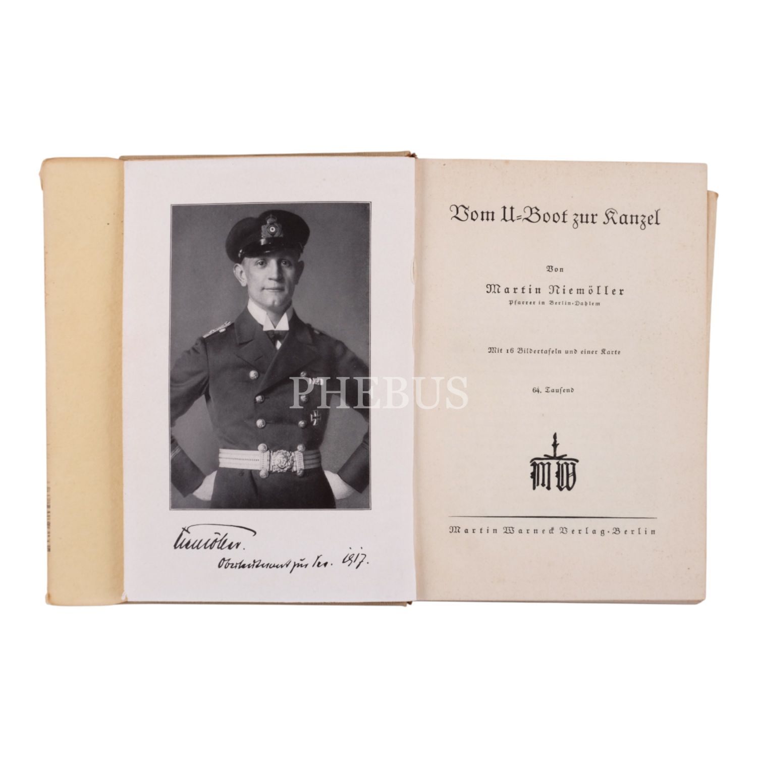VOM U. BOOT ZUR KANZEL, Martin Niemöller, 1938, Martin Warned Verlag (Berlin), 210 sayfa, 14x20 cm...