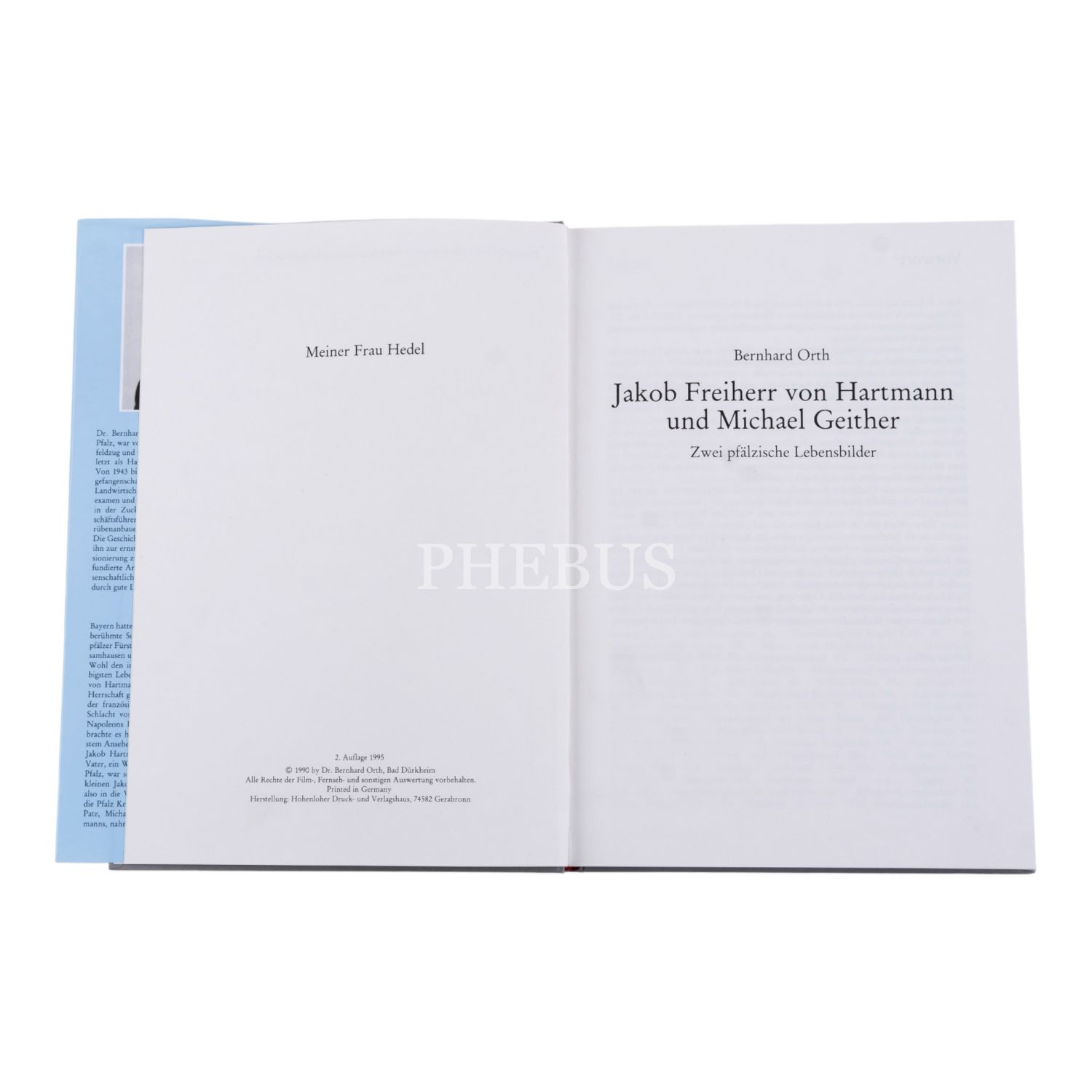 JAKOB FREIHERR VON HARTMANN UND MICHAEL GEITHER (Zwei pfalzische Lebensbilder), Bernhard Orth, 1995, Herstellung: Hohenloher Druck und Verlagshaus, Gerabronn, 239 sayfa, 17x24 cm...