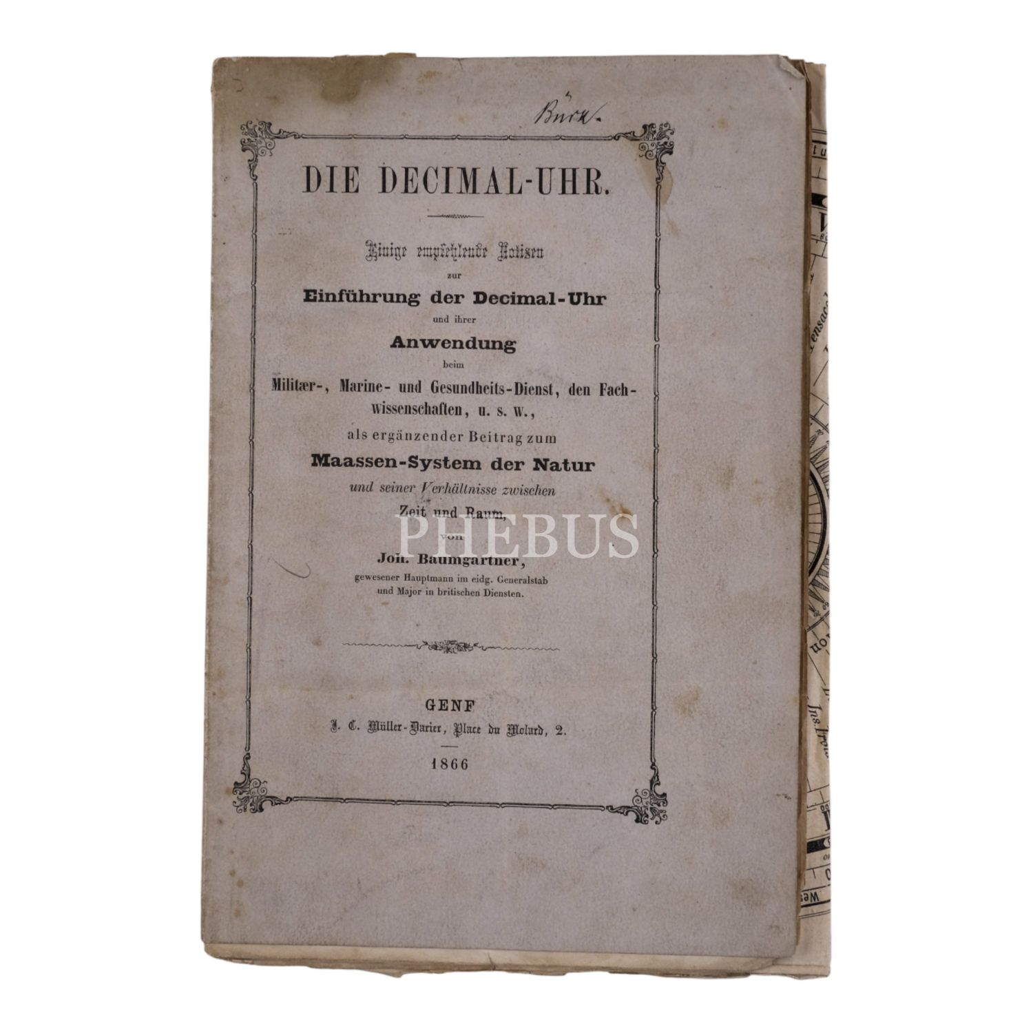 DIE DECIMAL-UHR, John Baumgartner, 1866, Genf, 24 sayfa, 16x23 cm...