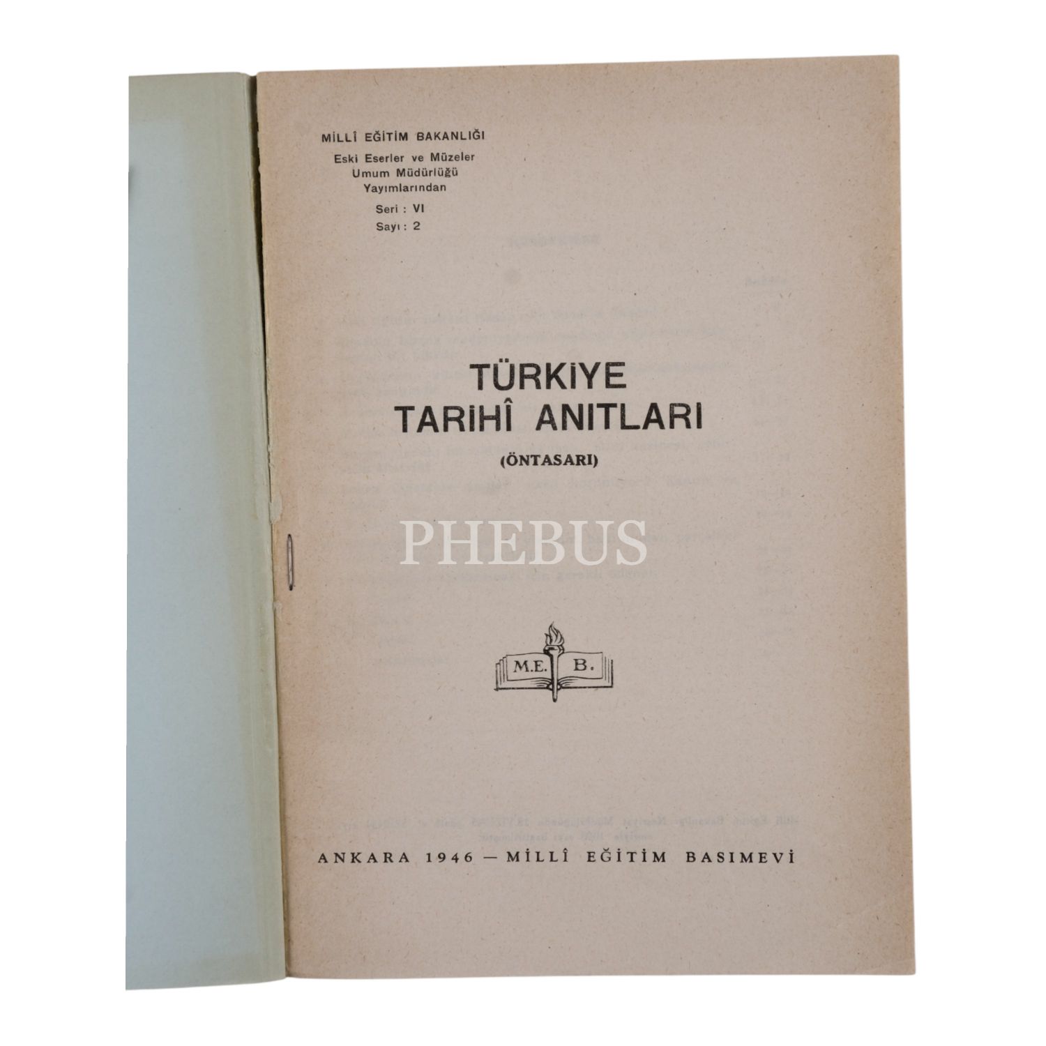 TÜRKİYE TARİHÎ ANITLARI (Öntasarı), 1946, Millî Eğitim Basımevi, 133 sayfa, 17x23 cm...