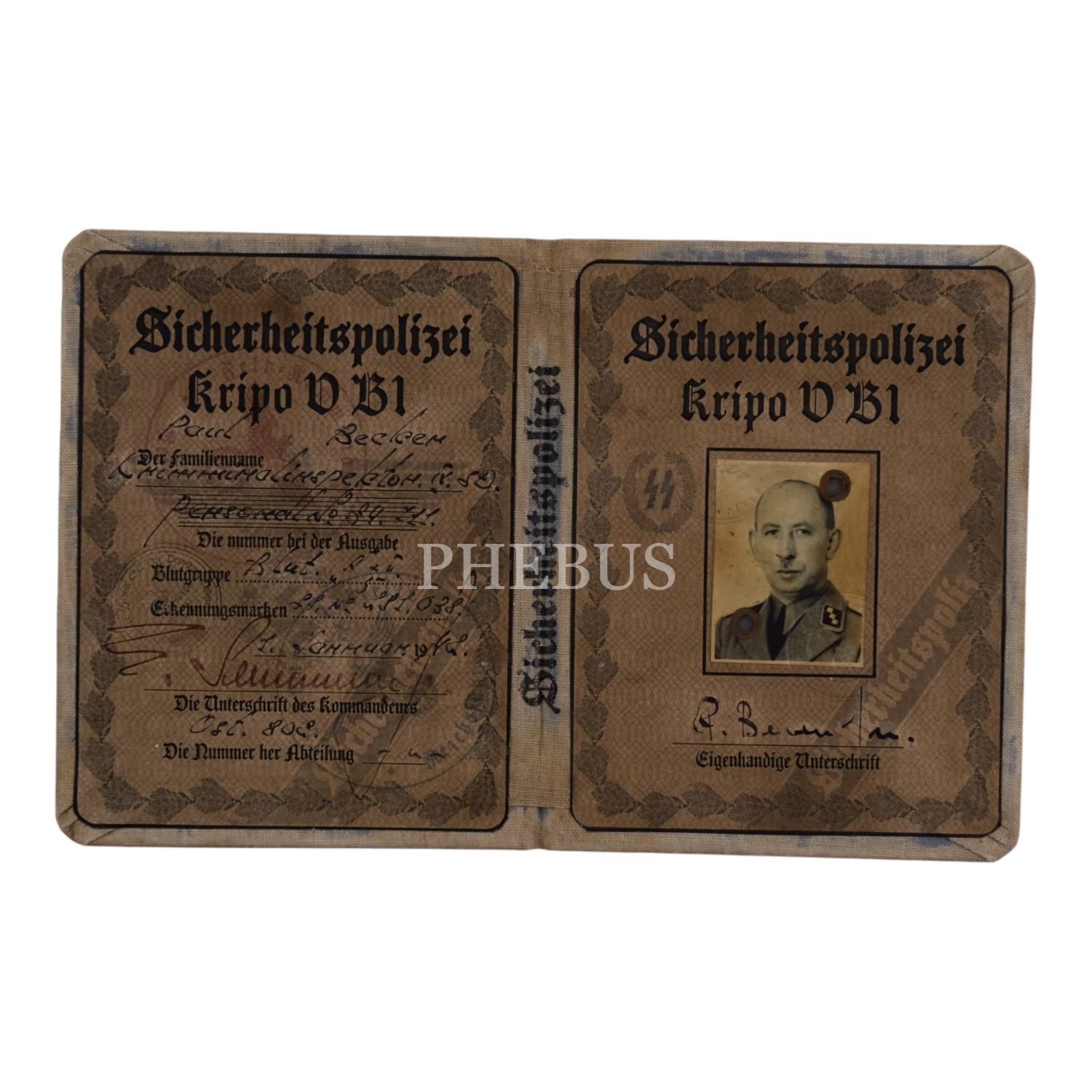 Nazi Almanyası´ndan bir SS subayı kimliği, fotoğraflı, 10x13 cm...
