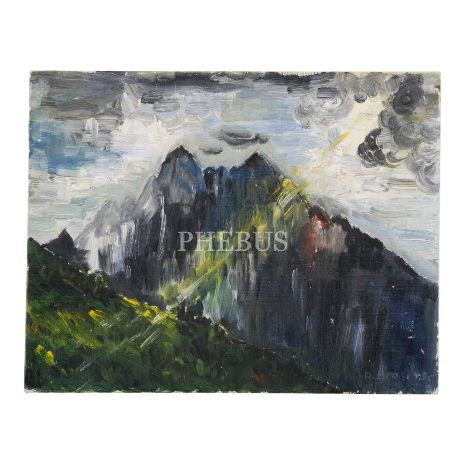 "R. Brosi (19)43" imzalı, duralit üzerine yağlı boya peyzaj, 27x21 cm...