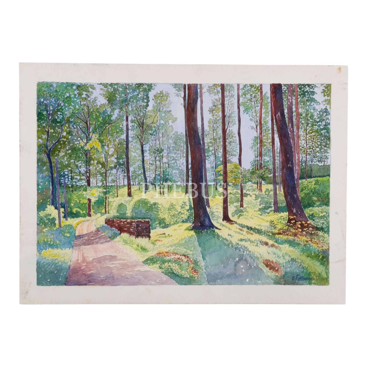 "E. Fehlmann" imzalı, kâğıt üzerine sulu boya peyzaj, 34x25 cm...