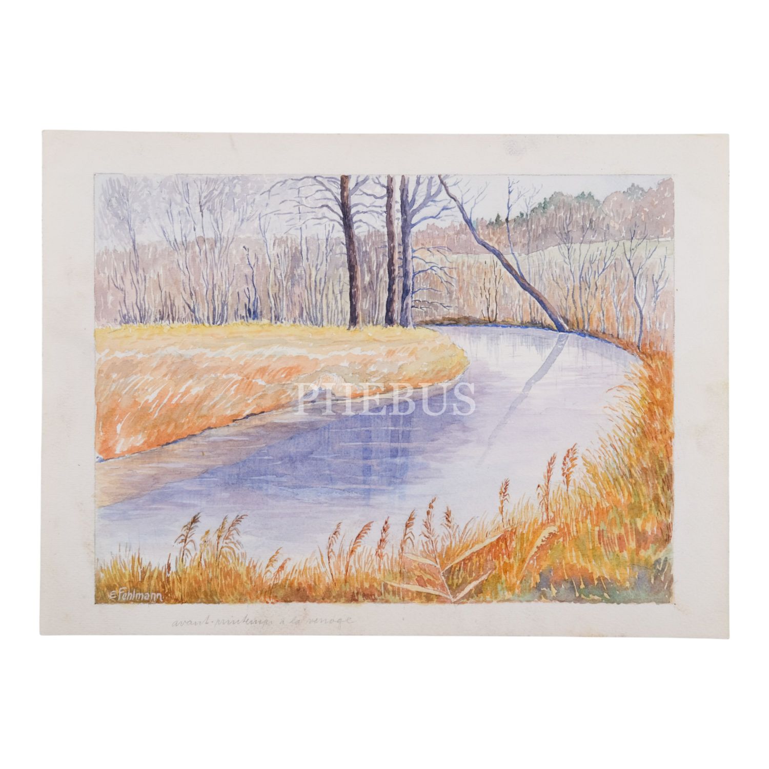 "E. Fehlmann" imzalı, kâğıt üzerine sulu boya peyzaj, 34x25 cm...