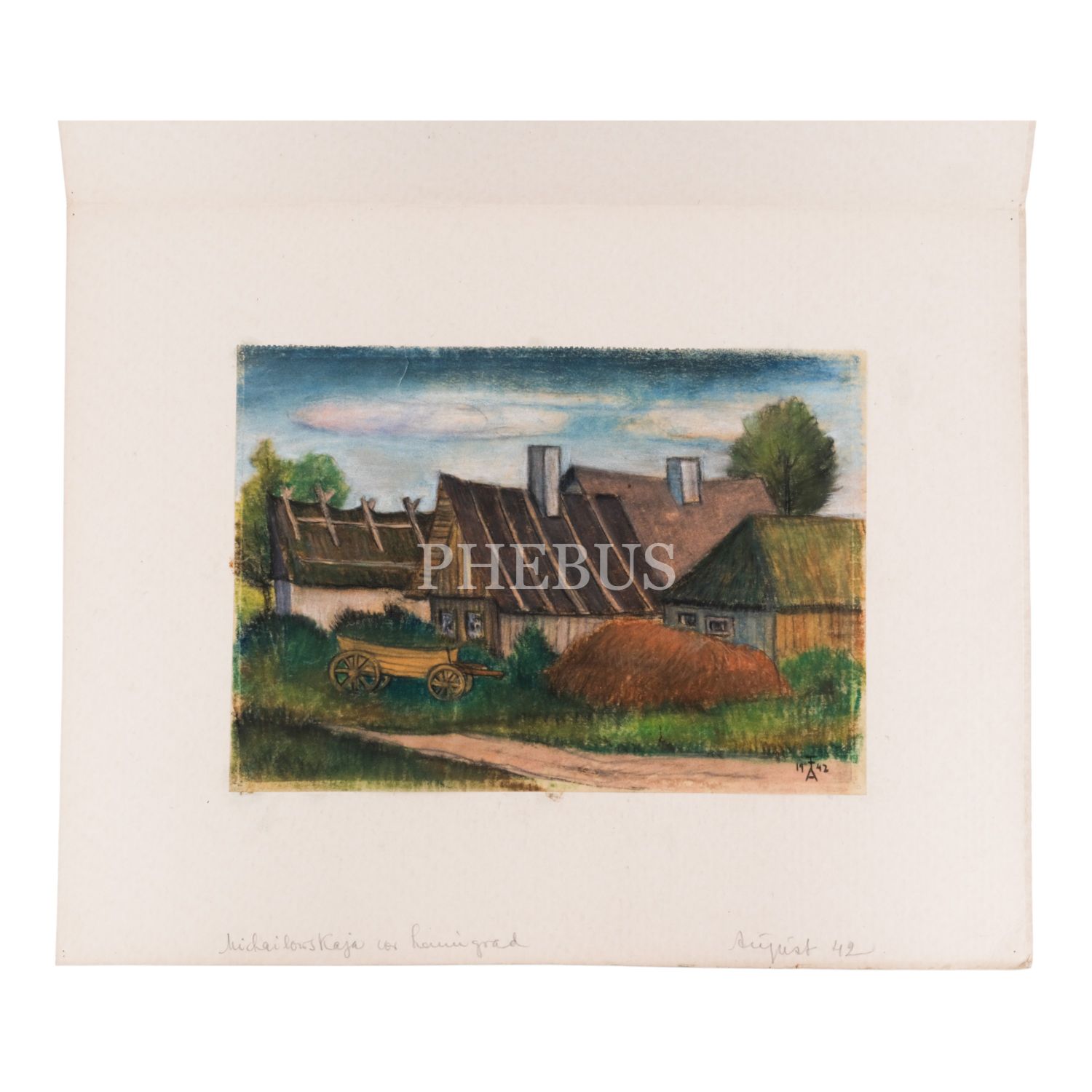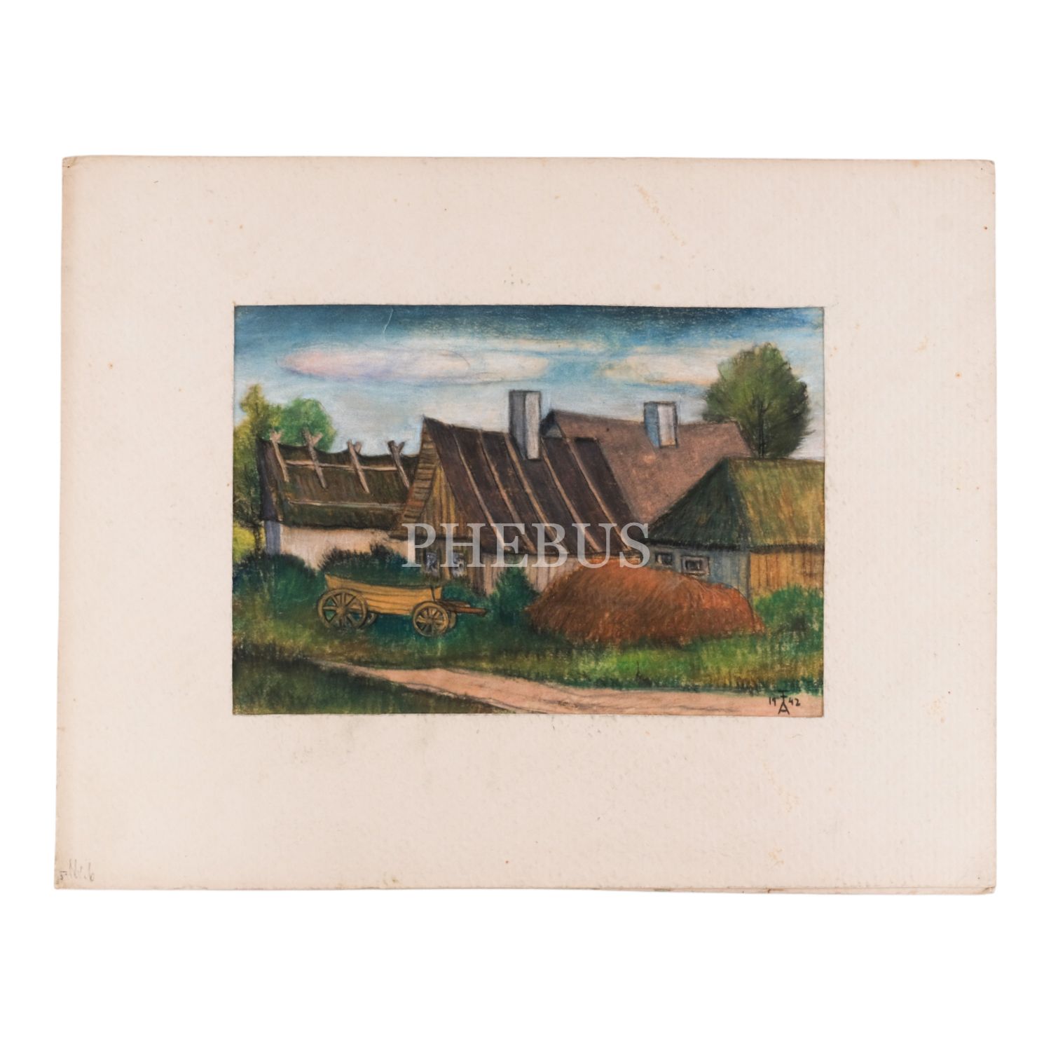 "FA" imzalı ve 1942 tarihli, kâğıt üzerine kuru boya kasaba resmi, paspartulu, resim 29x21 cm, paspartu 45,5x35 cm...