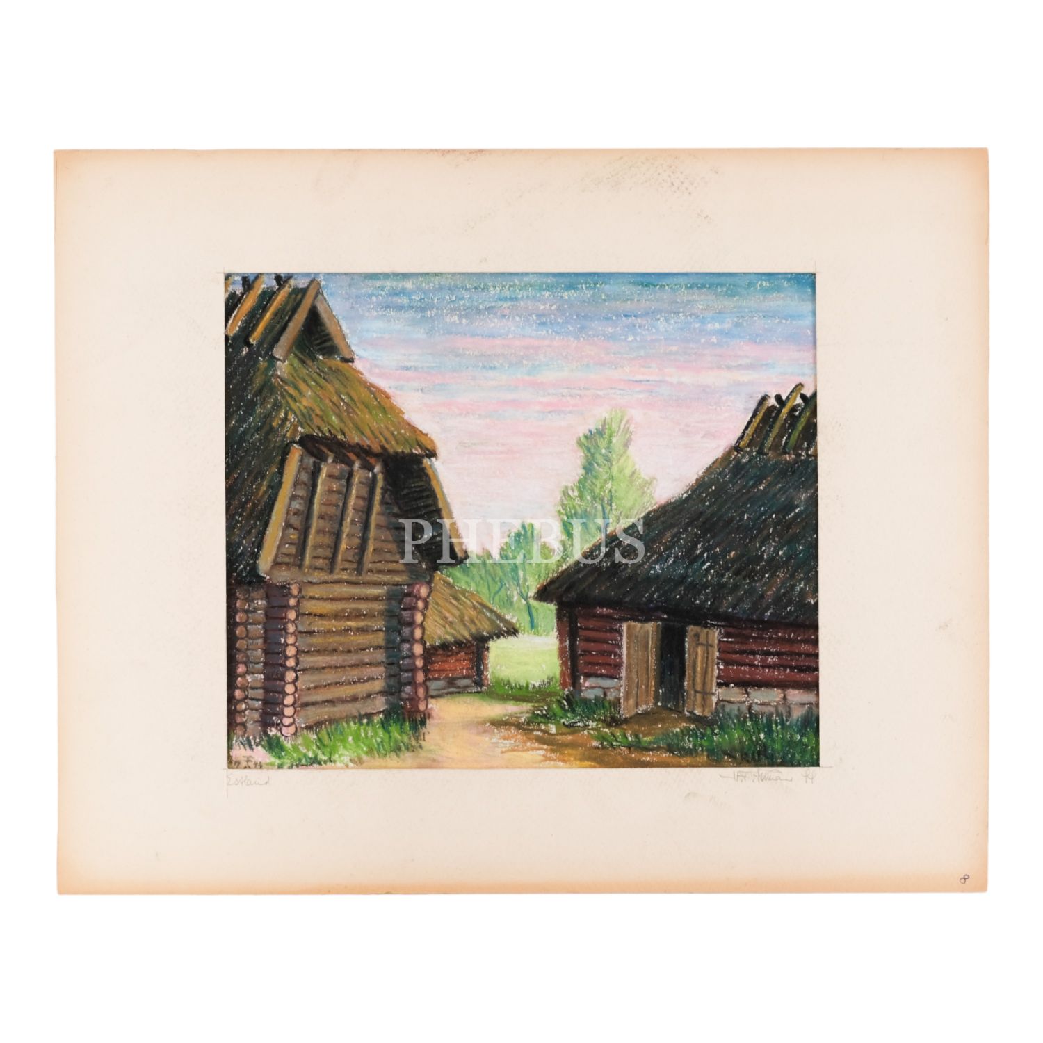"FA" imzalı ve 1944 tarihli, kâğıt üzerine pastel boya ev resmi, paspartulu, resim 31x24 cm, paspartu 44x35 cm...