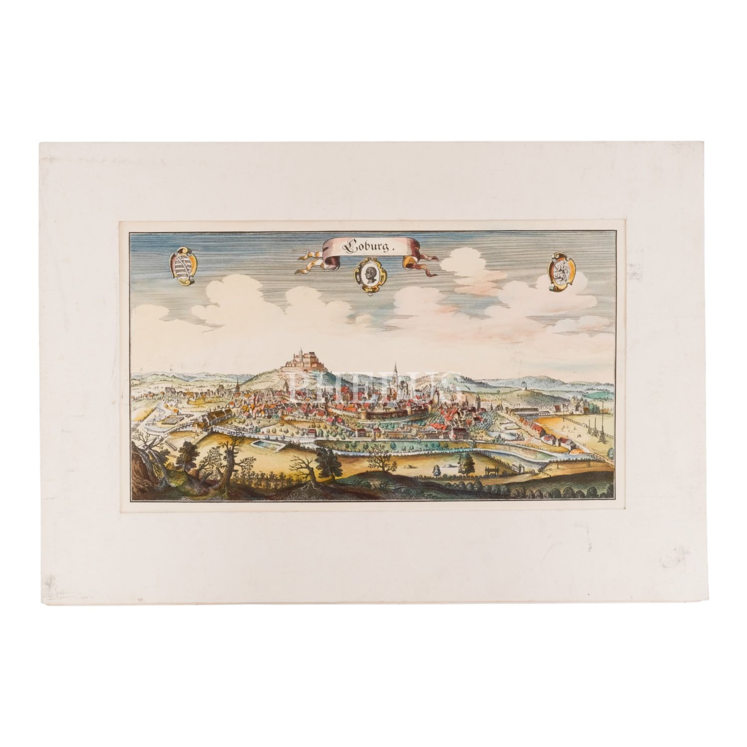 Almanya´nın Saksonya-Anhalt eyaletindeki Jerichower Land bölgesinde yer alan Loburg kasabasının renkli gravürü, paspartulu, 51x36 cm...