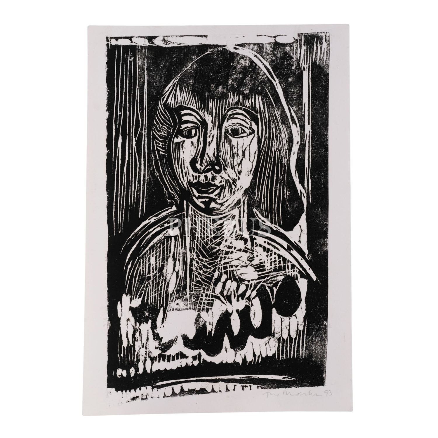 Sanatçısından imzalı, bir kadın portresinin tasvir edildiği gravür, 35x50 cm...