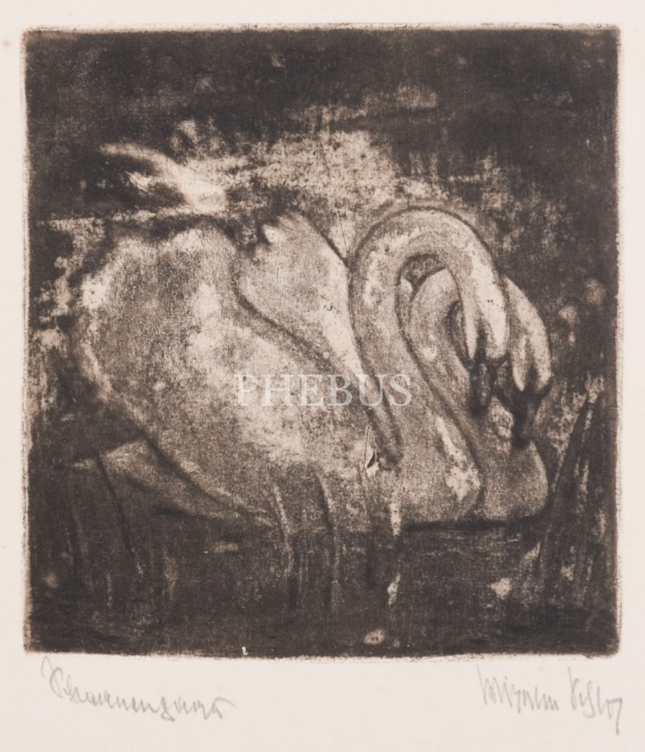 Sanatçısından imzalı, kuğuların tasvir edildiği gravür, 32x32 cm...