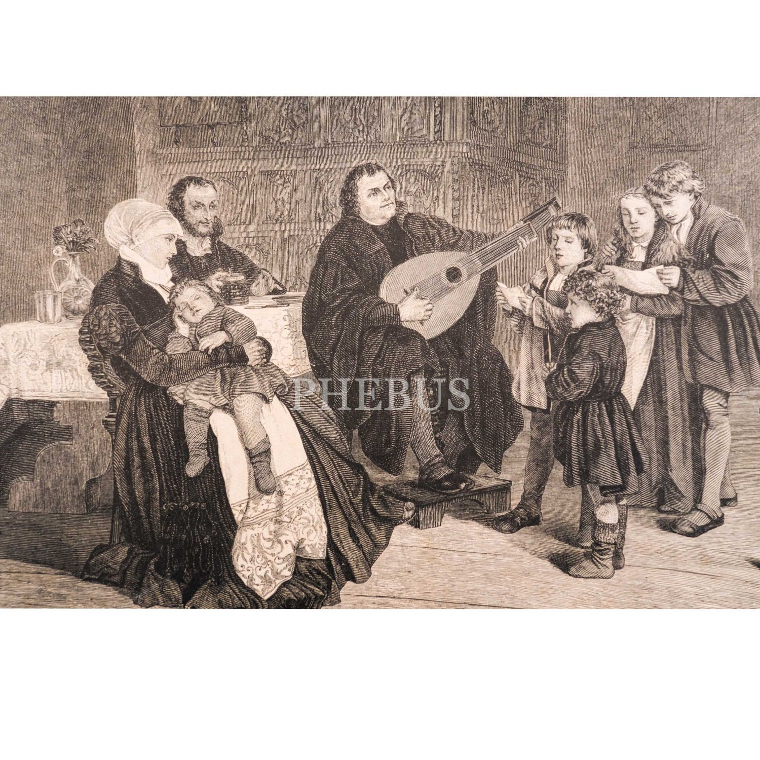 Martin Luther´in enstrüman çalarken tasvir edildiği gravür, 38x29 cm...
