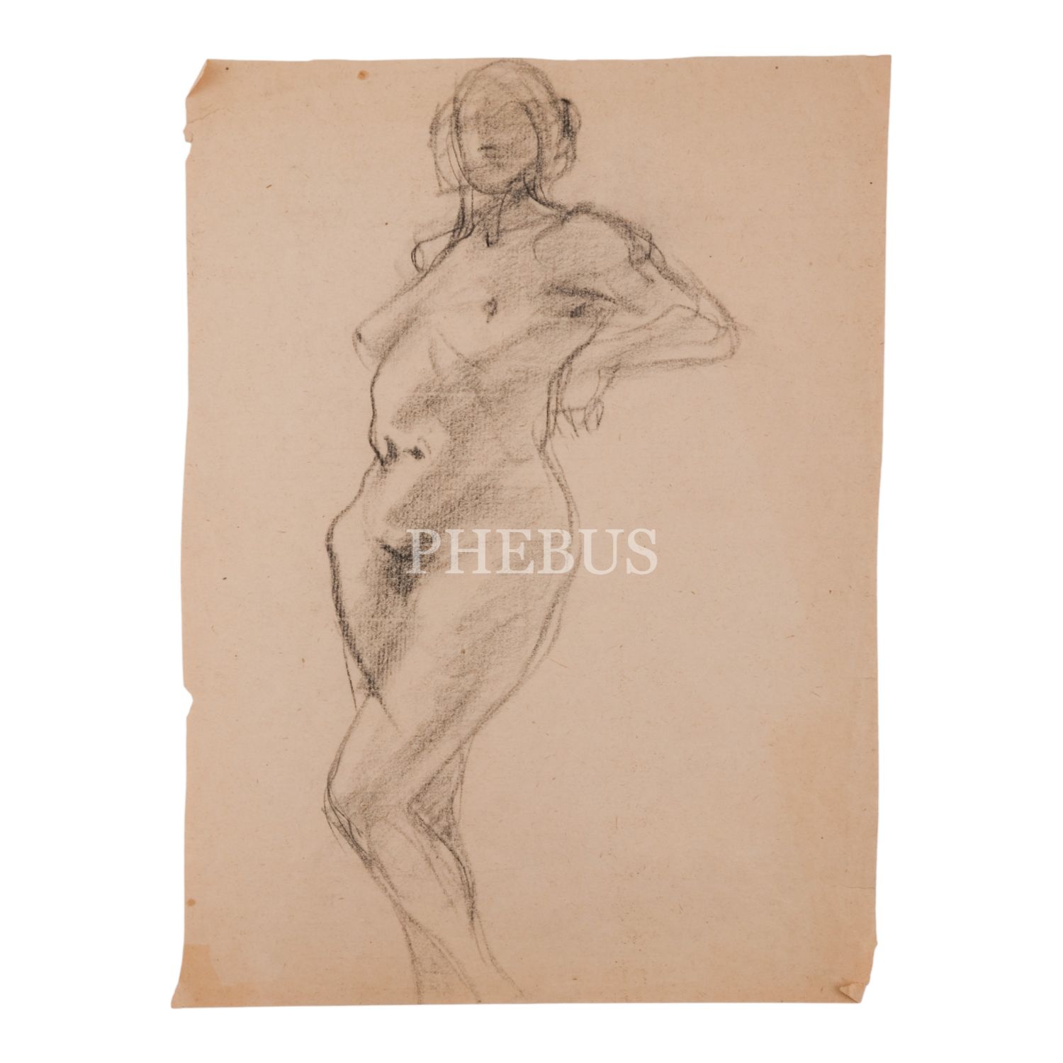 Kâğıt üzerine karakalem nü kadın, 24x32 cm...