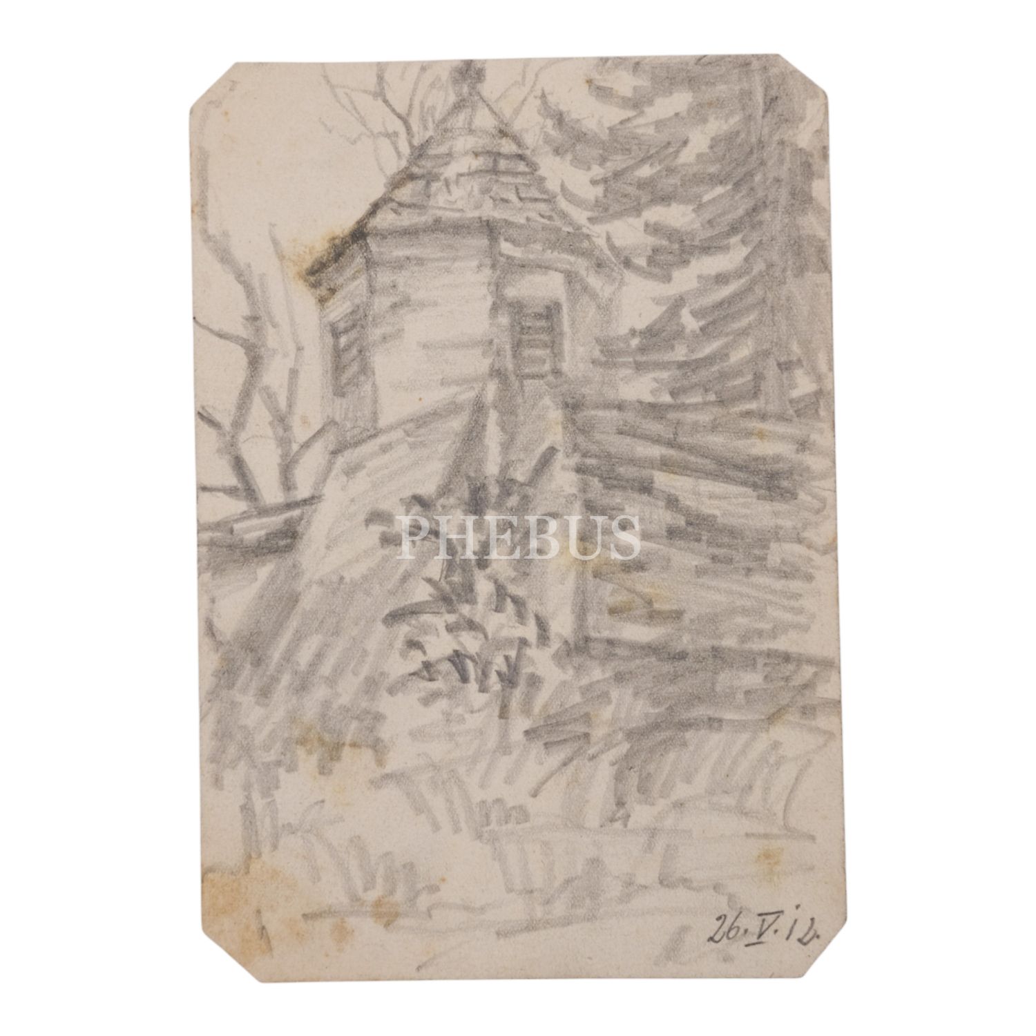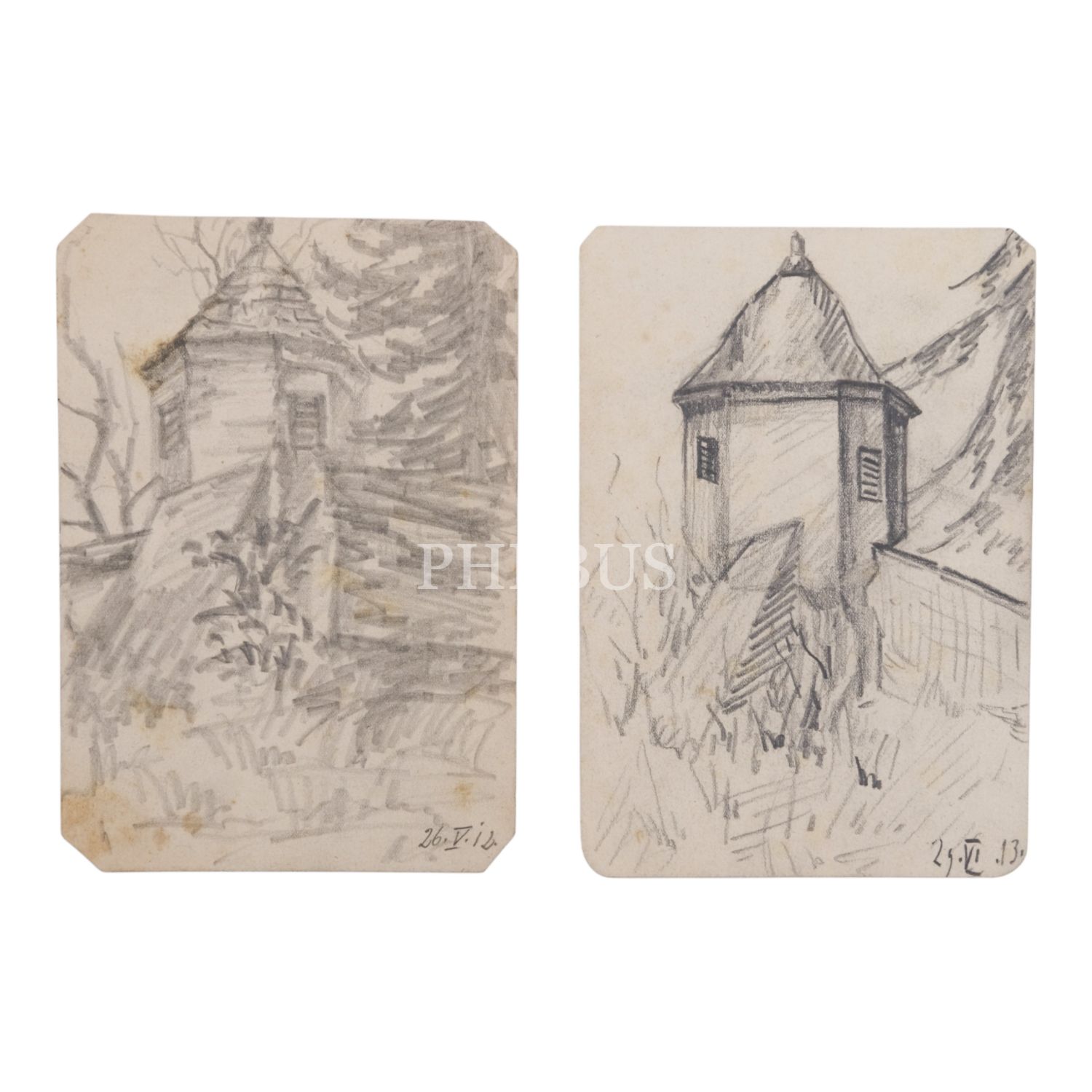 Kâğıt üzerine karakalem peyzaj, 2 sayfa, 12x18 cm...