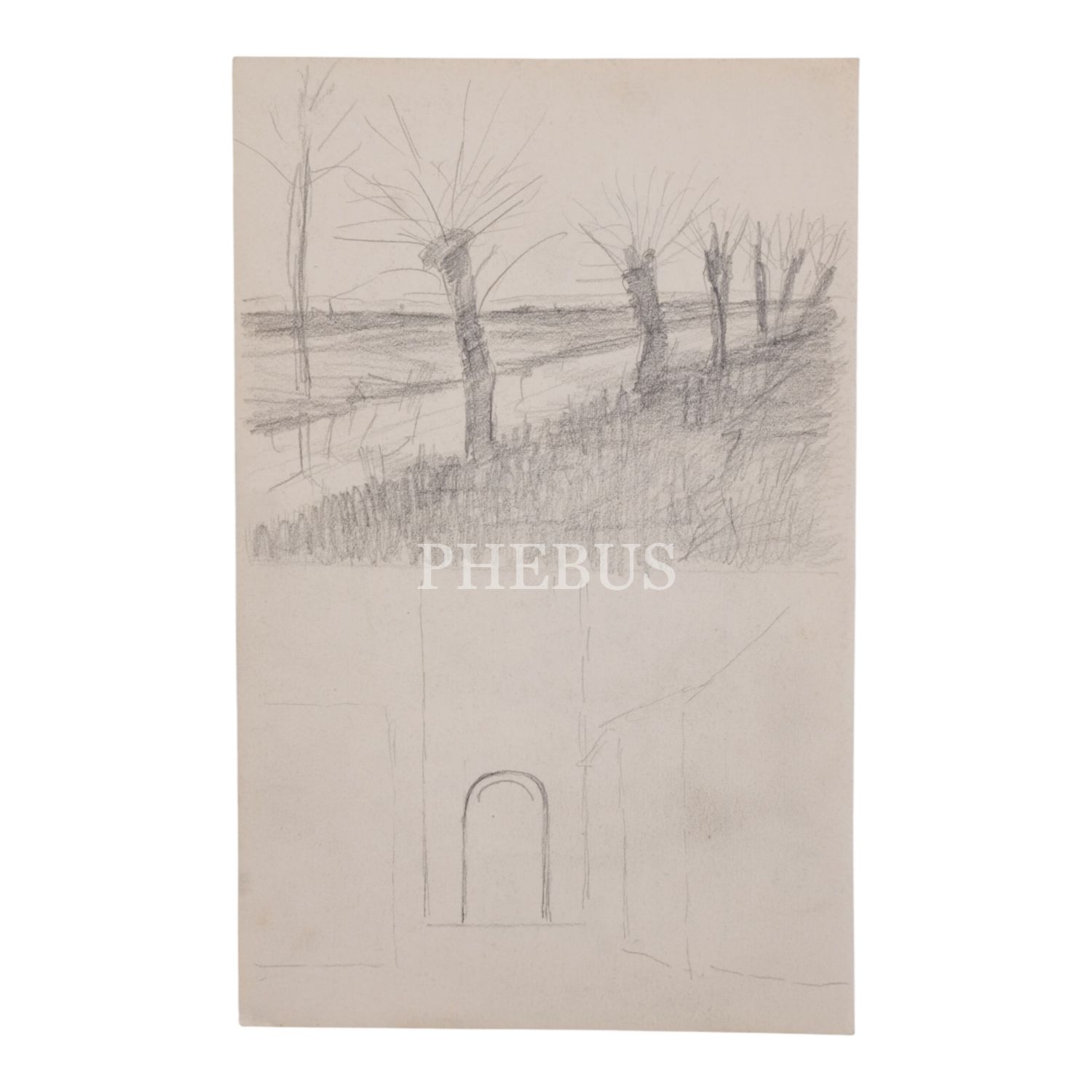 Kâğıt üzerine karakalem Augsburg´ta bir ev çizimi, çift taraflı, 14x22 cm...