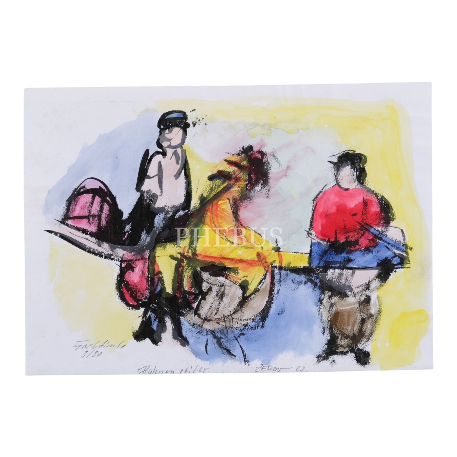 "Zerov" imzalı, kâğıt üzerine sulu boya resim, 1962, 29x21 cm...