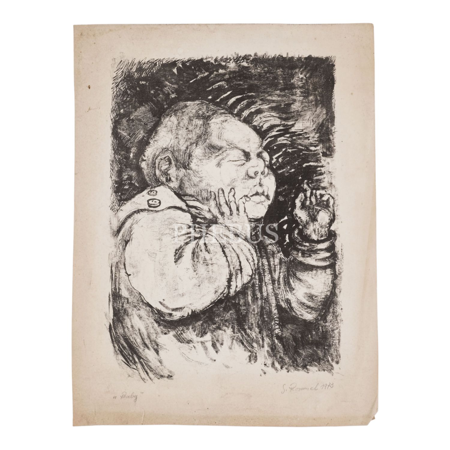 S. Roumel imzalı, "Baby" başlıklı gravür, 35x46 cm...