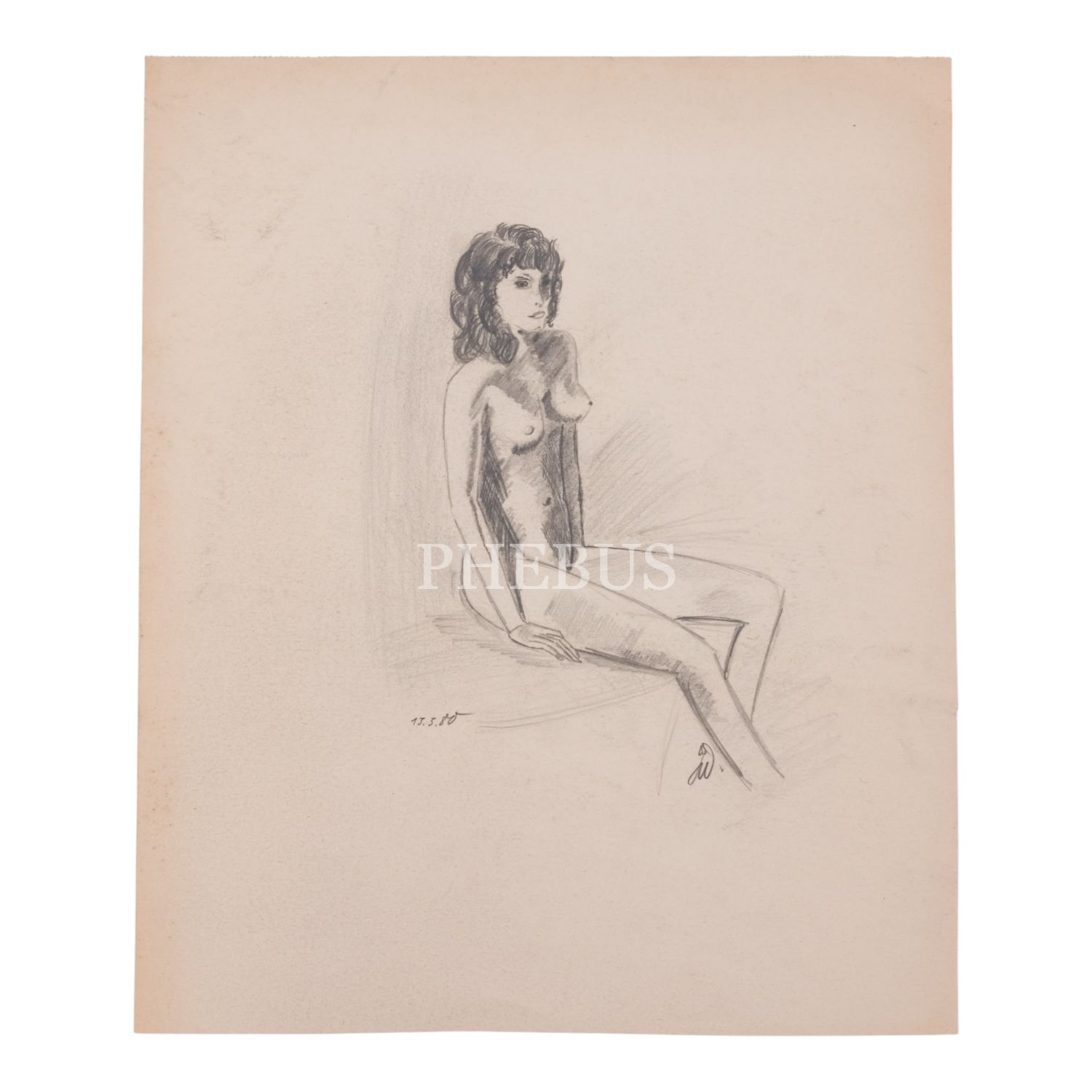 Sanatçı imzalı, karakelem nü kadın çizimi, 28x34 cm...