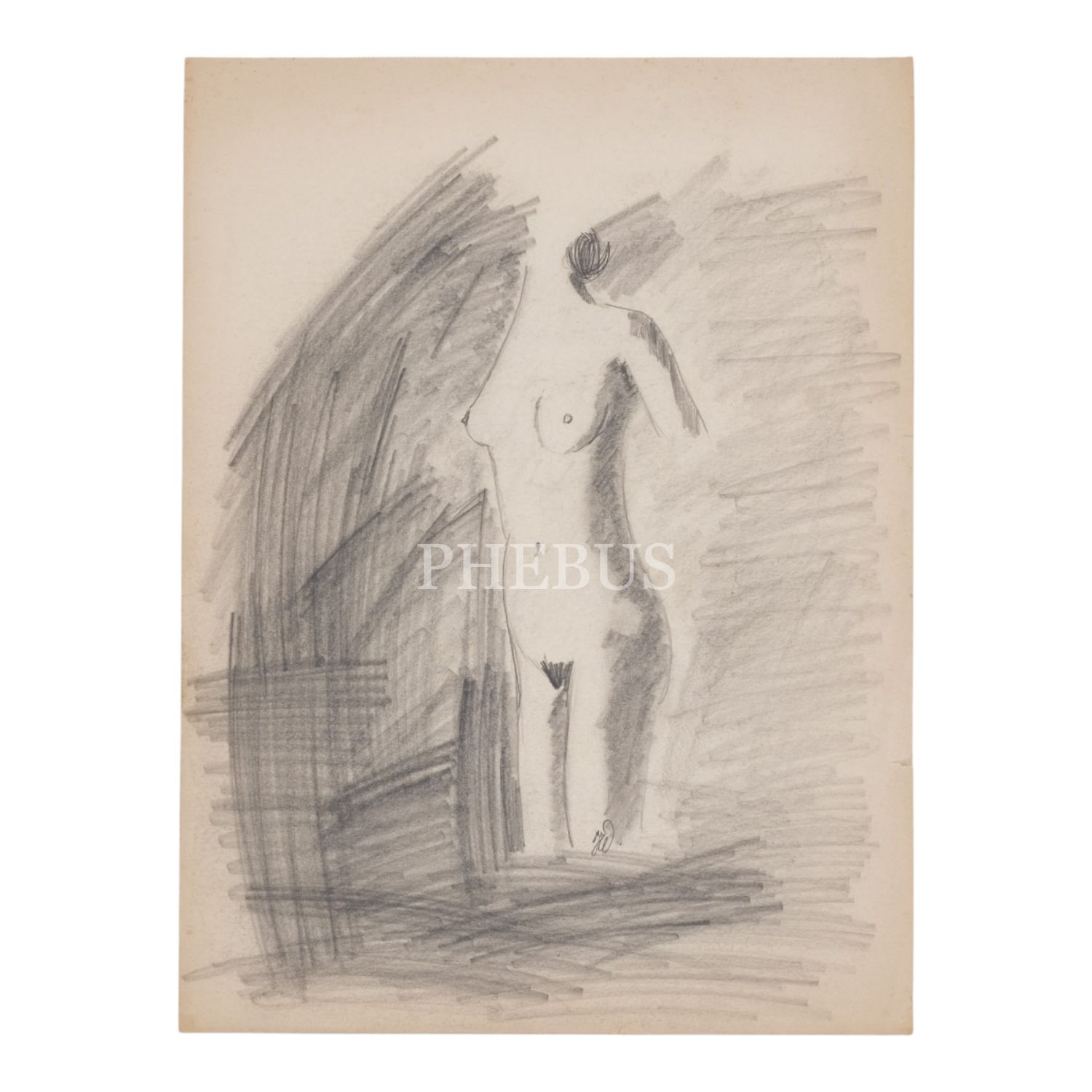 Sanatçı imzalı, kâğıt üzerine karakalem nü kadın, 30x40 cm...