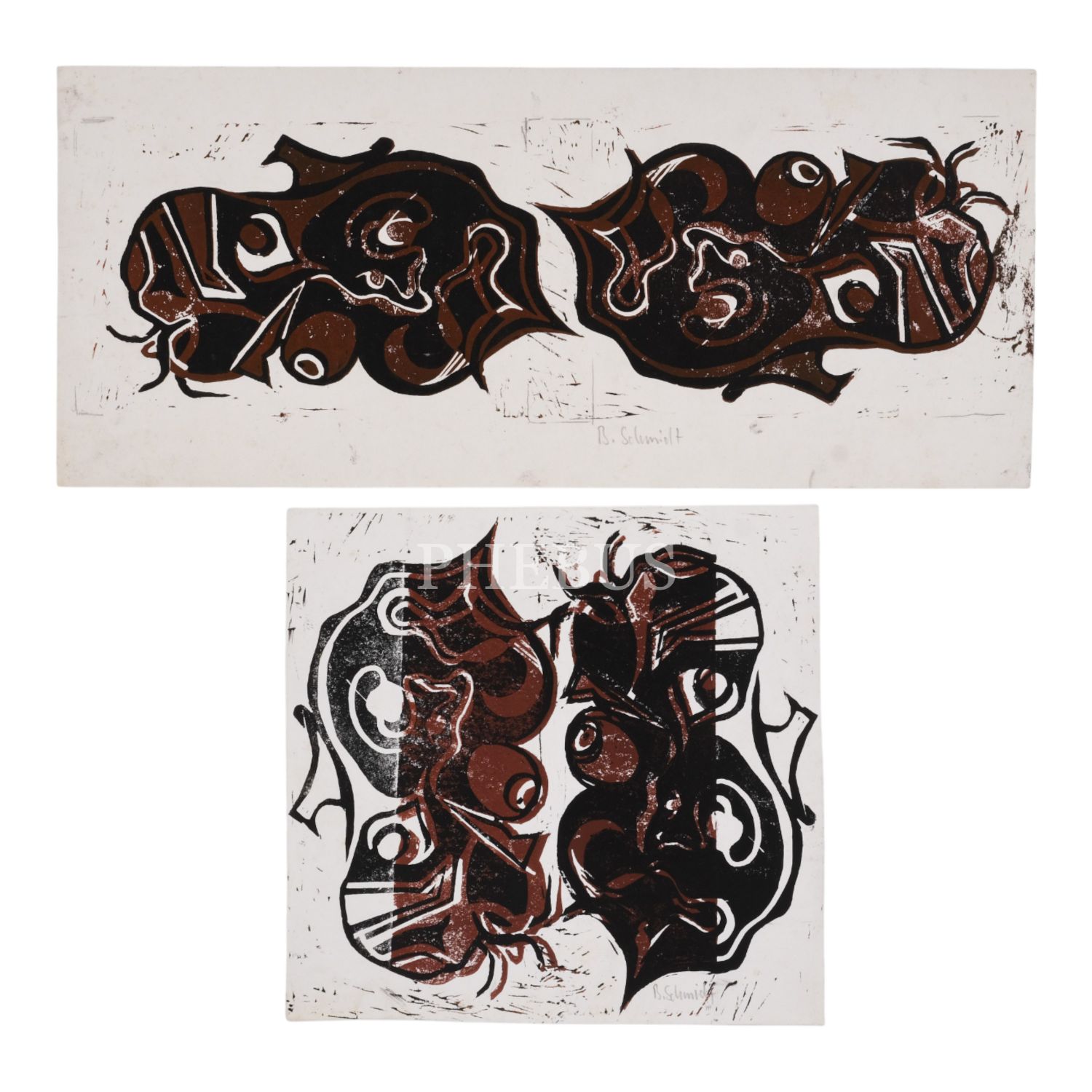 B. Schmidt imzalı, 2 adet soyut resim, 19x43 cm ve 23x23 cm...