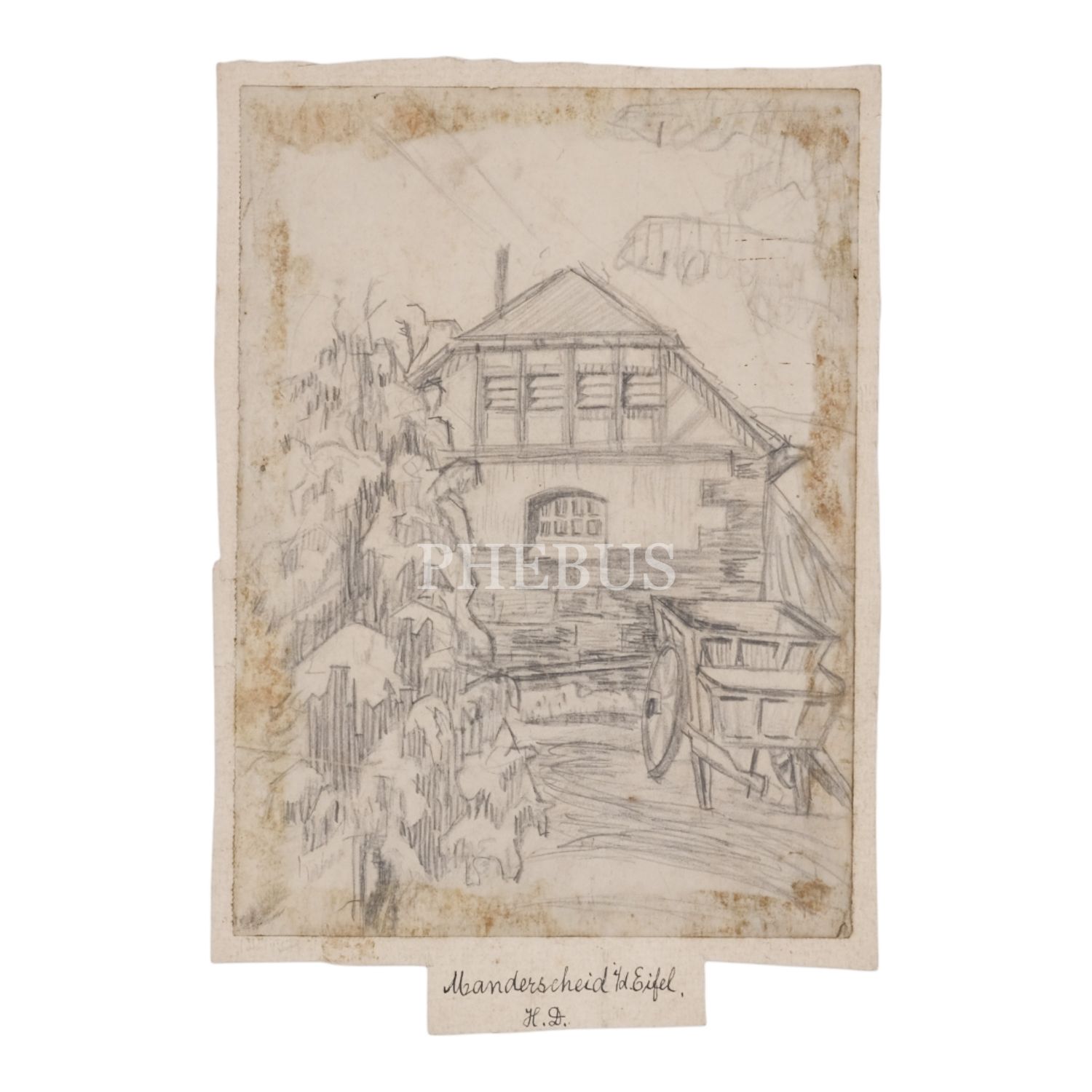 Almanya´nın Manderscheid bölgesinden bir hanenin tasvir edildiği karakalem çizim, 22x29 cm...