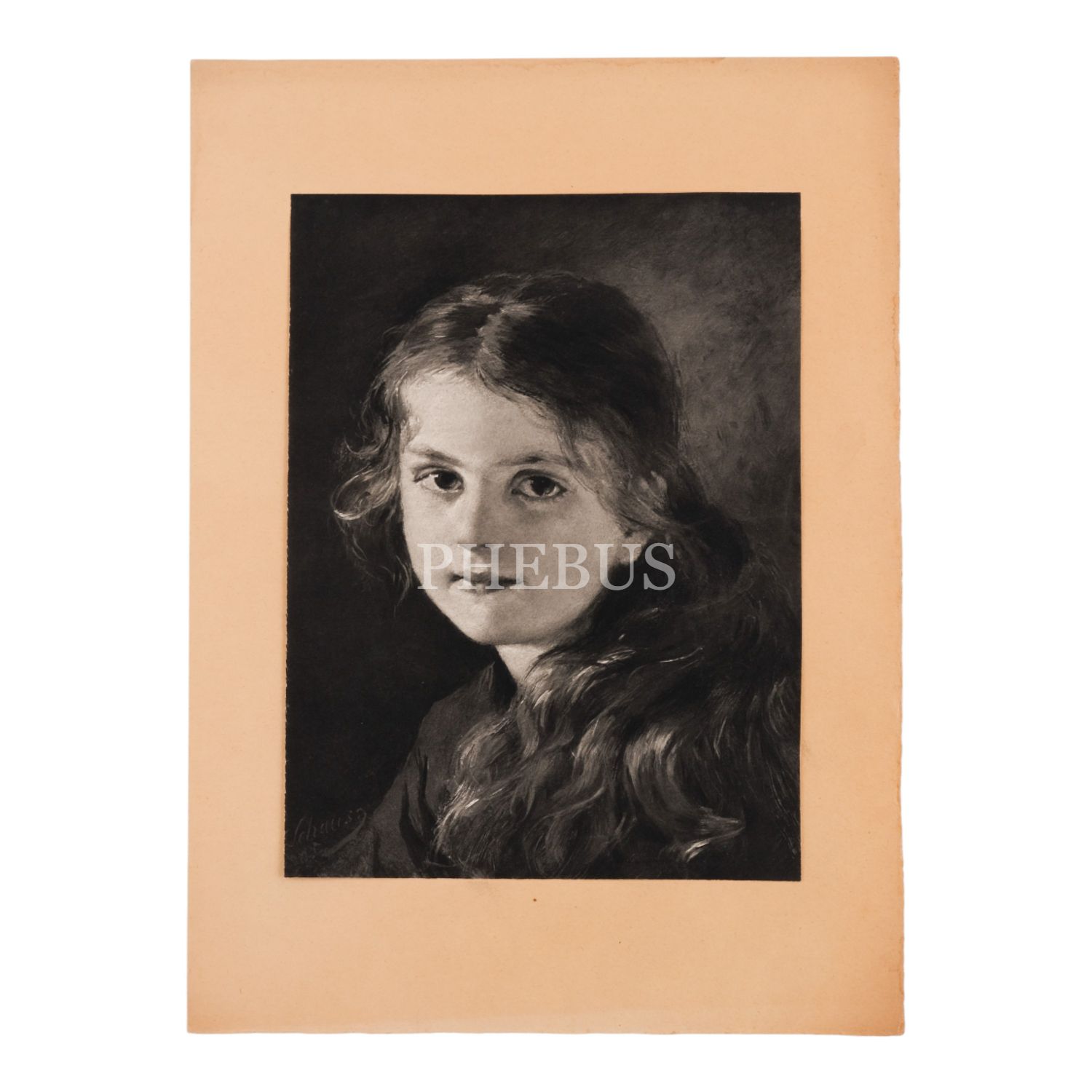 Bir kız çocuğunun portre resminin baskısı, kartona yapışık, resim 18x24 cm, karton 25x34 cm...