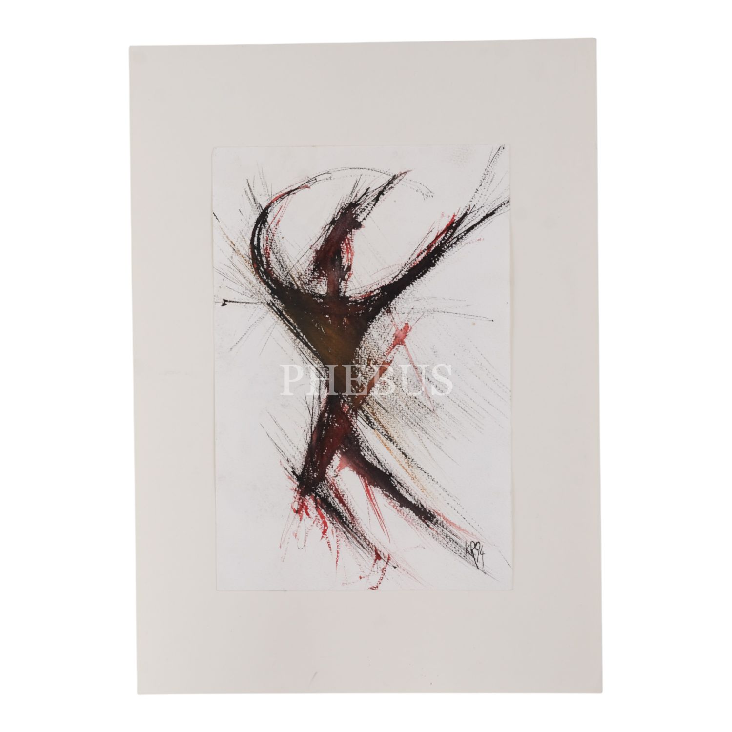 "KR94" imzalı, kâğıt üzerine sulu boya insan figürü ve arka yüzünde suluboya peyzaj resmi, 20x30 cm...