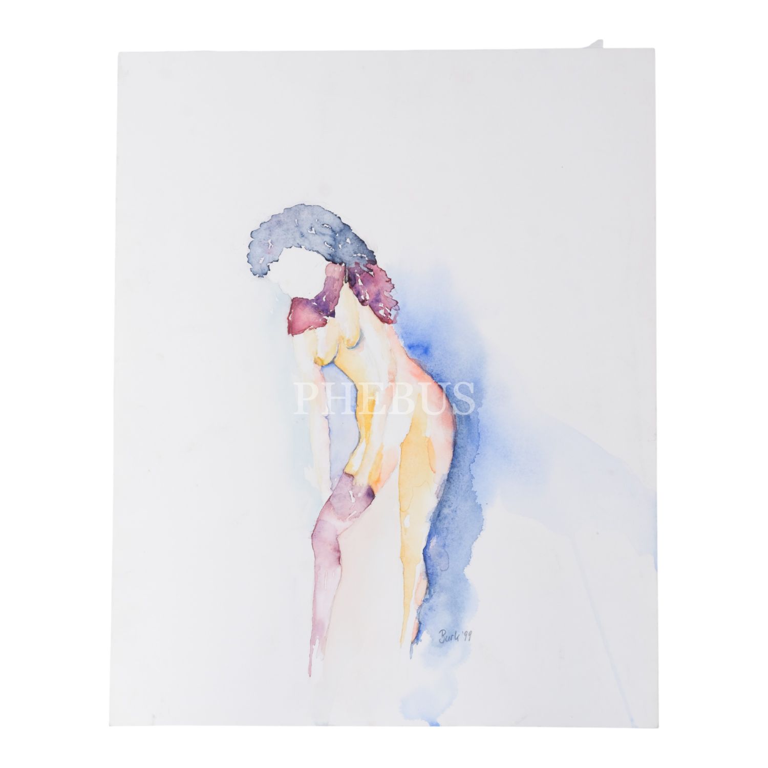 "Burk ´99" imzalı, kâğıt üzerine sulu boya nü kadın resmi, 40x50 cm...