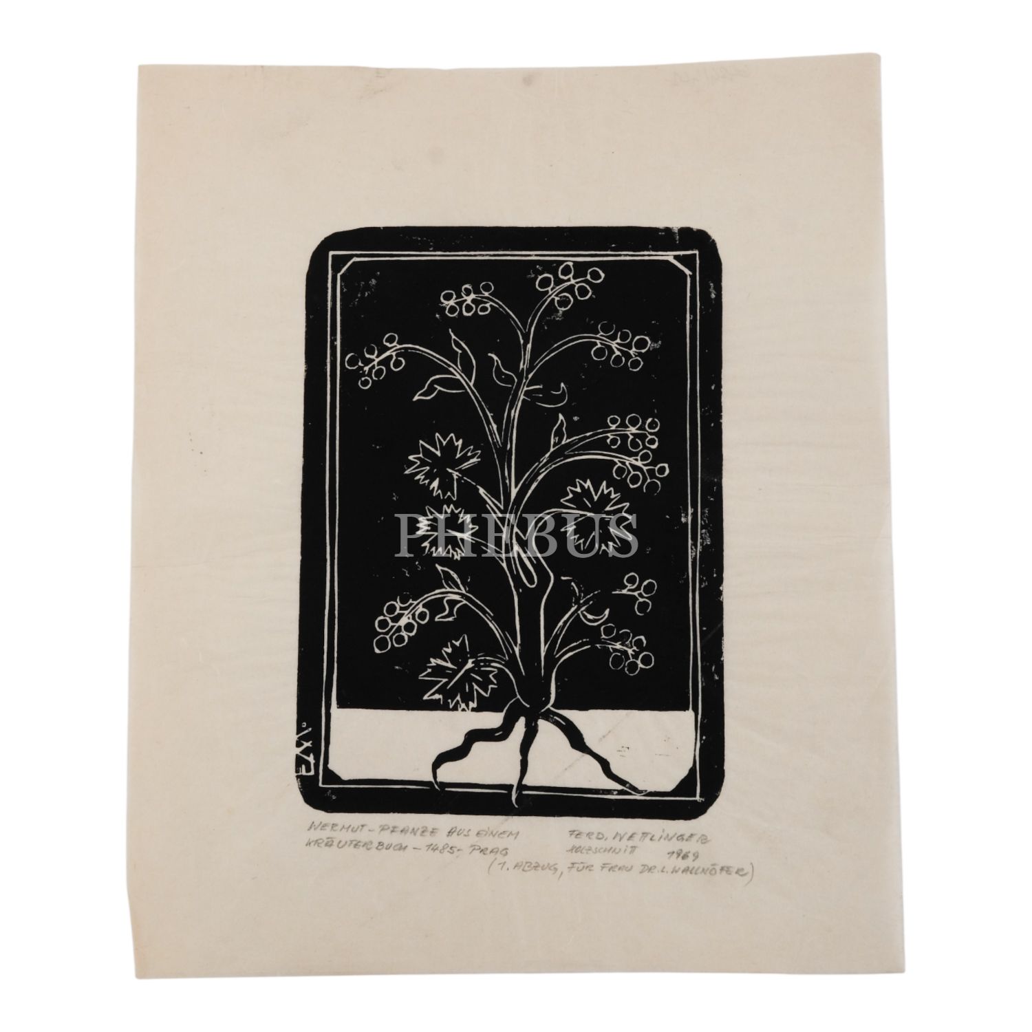 Bir pelin otunun tasvir edildiği gravür, 27x32 cm...