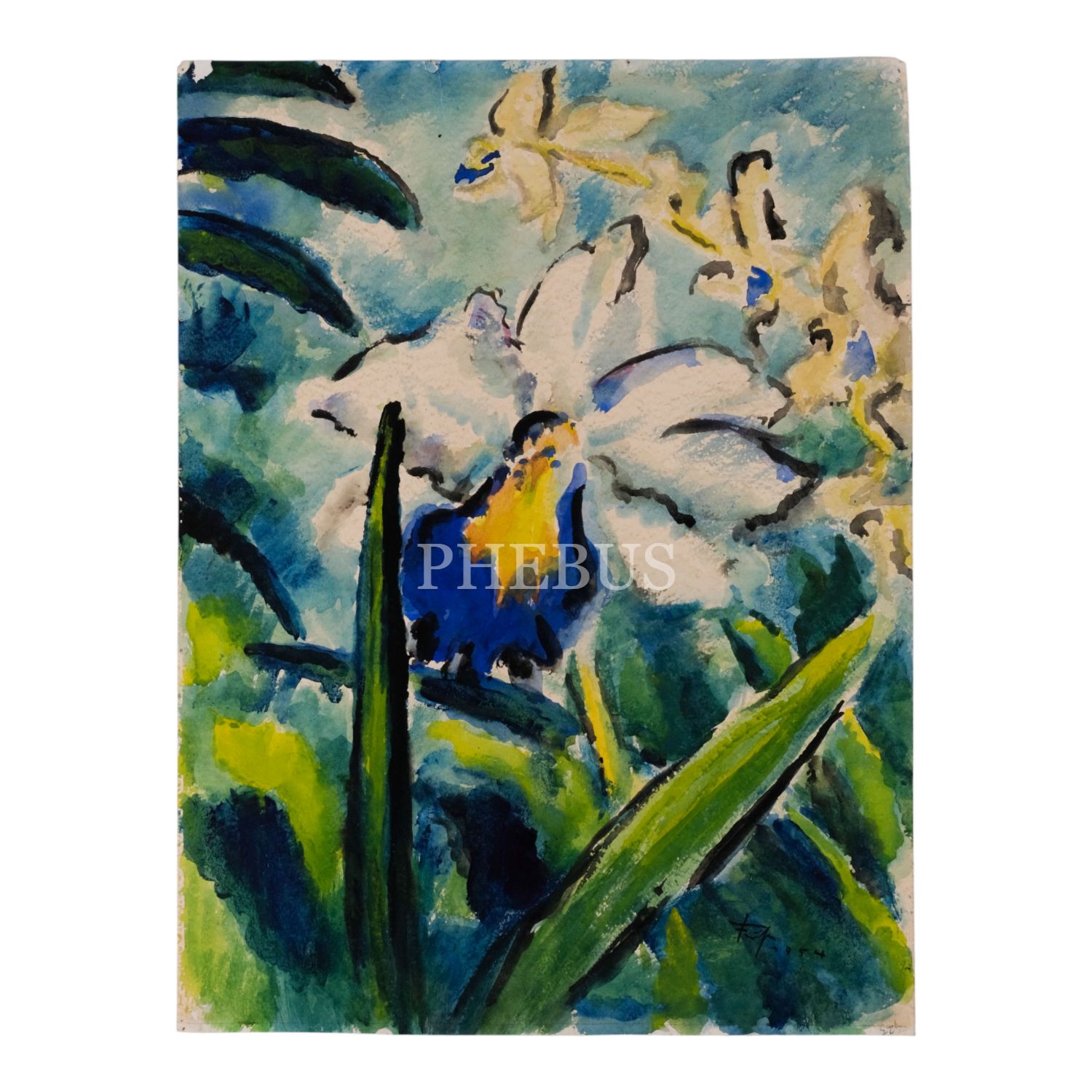 Sanatçı imzalı, karton üzerine guaj boya kadın portresi ve kuş resmi, çift taraflı, 37x48 cm...
