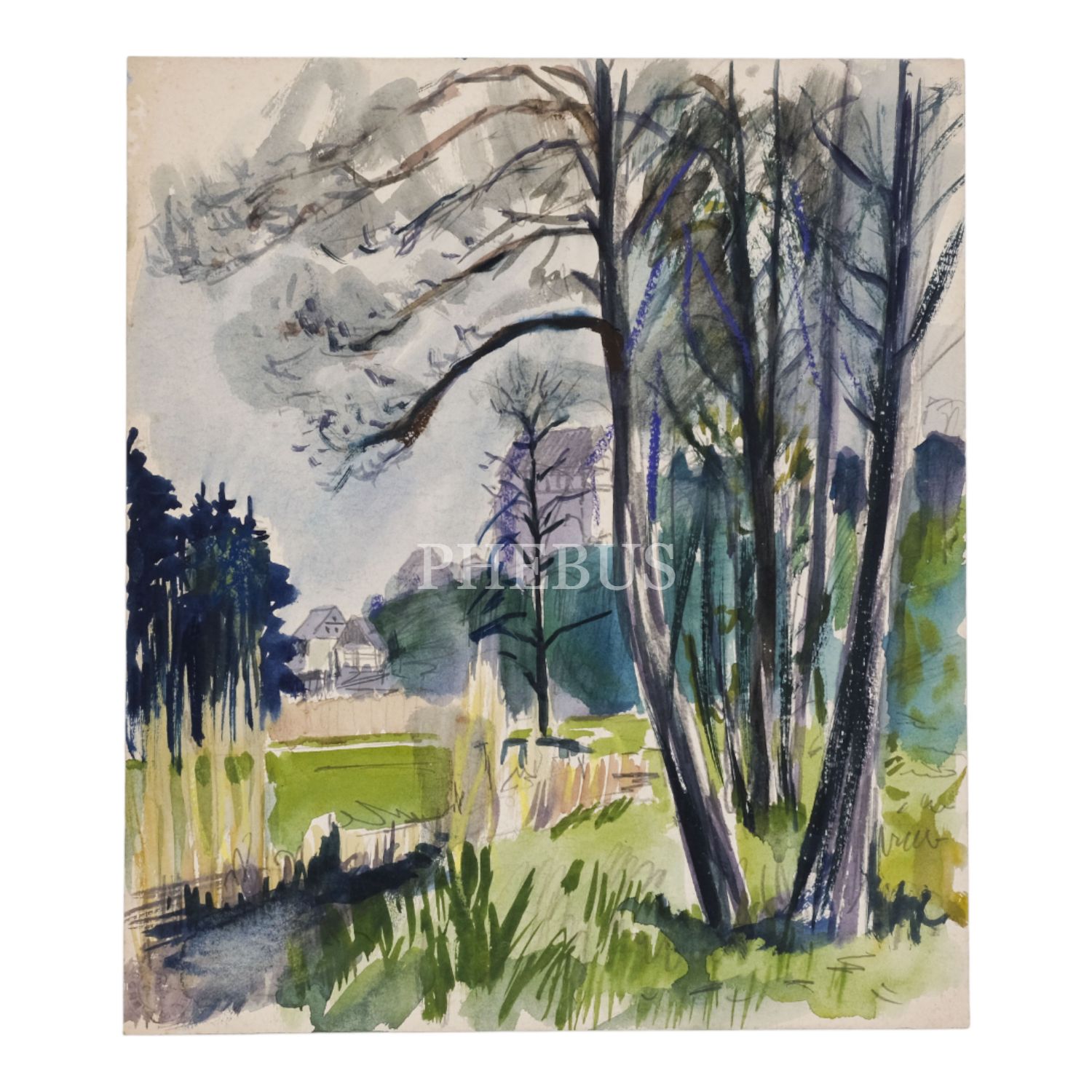 Ressam Albert Kley´in kâğıt üzerine sulu boya peyzaj çalışması, 30x35 cm...