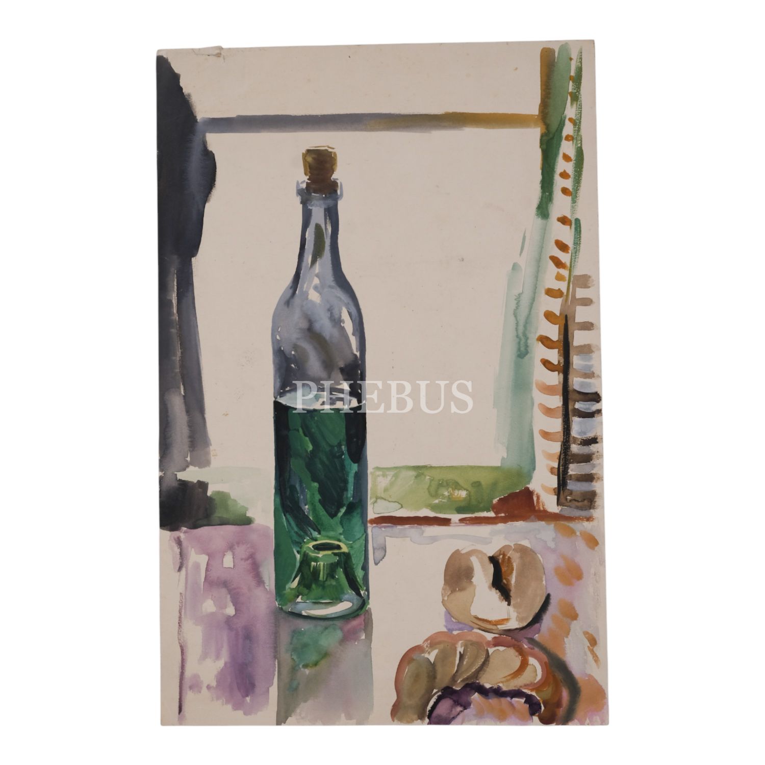 Albert Kley´den damgalı, kâğıt üzerine sulu boya natürmort, 30x46 cm...